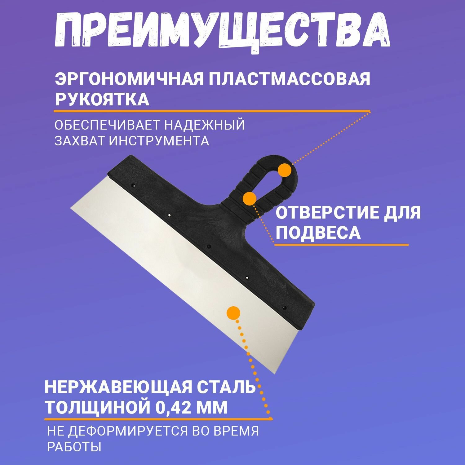 Фасадный шпатель 300 мм из нержавеющей стали с пластиковой рукояткой и отверстием для подвеса