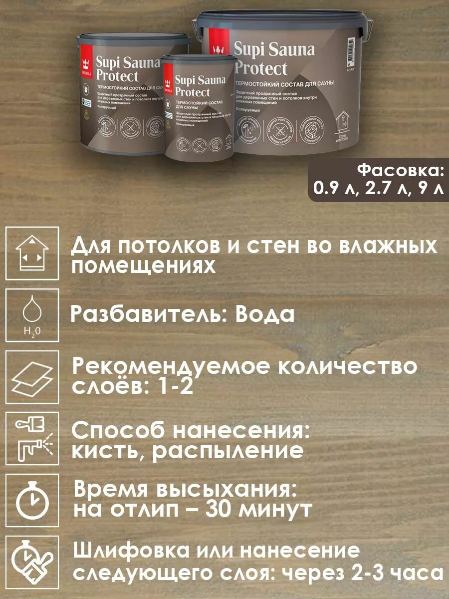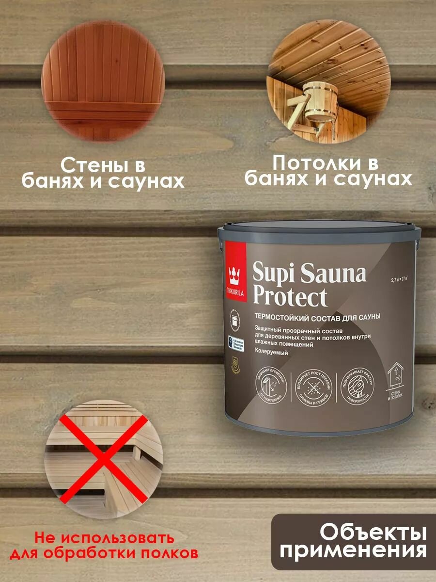 Пропитка для стен и потолков в бане и сауне Tikkurila Supi Sauna Protect 2.7 л / Тиккурила Супи Сауна Протект интересное: