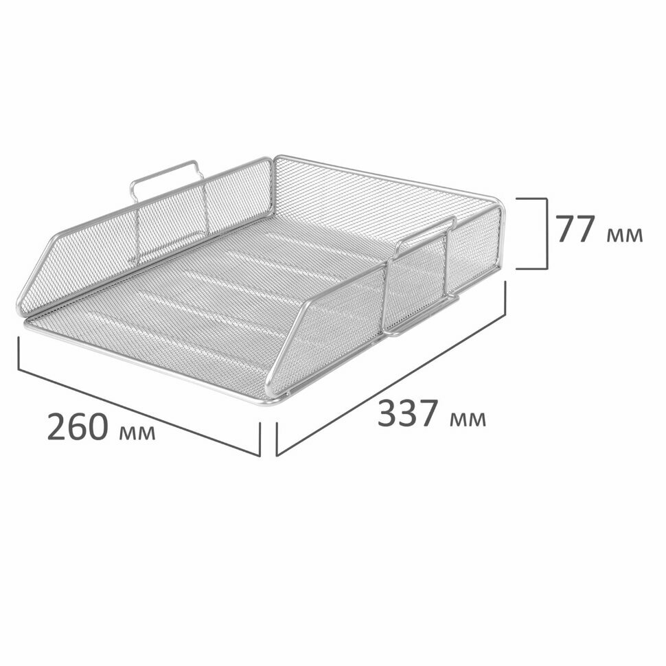Лоток горизонтальный металлический для бумаг BRAUBERG "Germanium", А4 (260х337х77 мм), серебр,231955