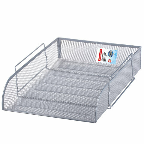 Купить Лоток горизонтальный металлический для бумаг BRAUBERG "Germanium", А4 (260х337х77 мм), серебр.,231955