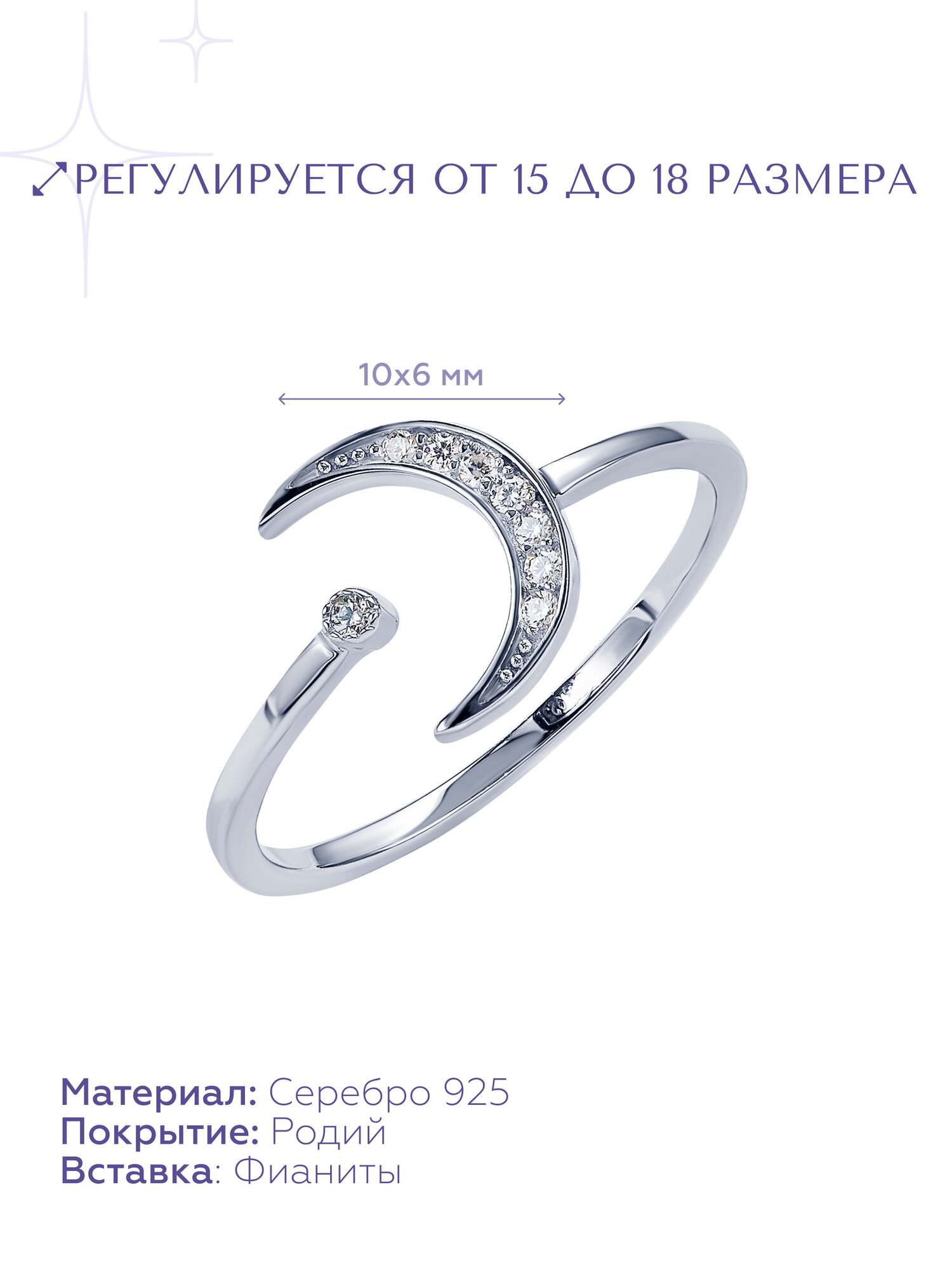 Кольцо ювелирное MIESTILO серебро 925 пробы, полумесяц, луна интересное: