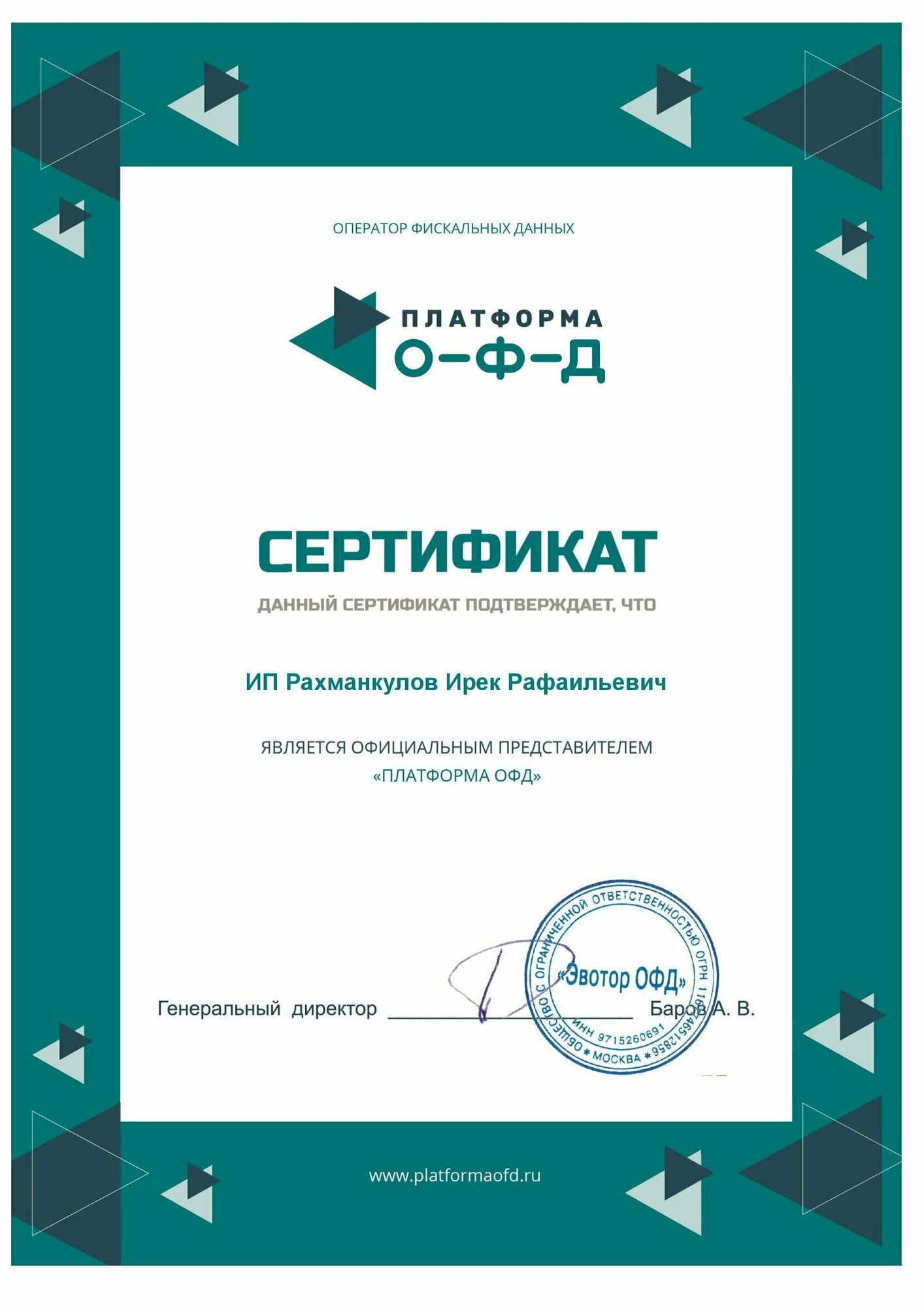 Код активации Платформа ОФД на 12 месяцев