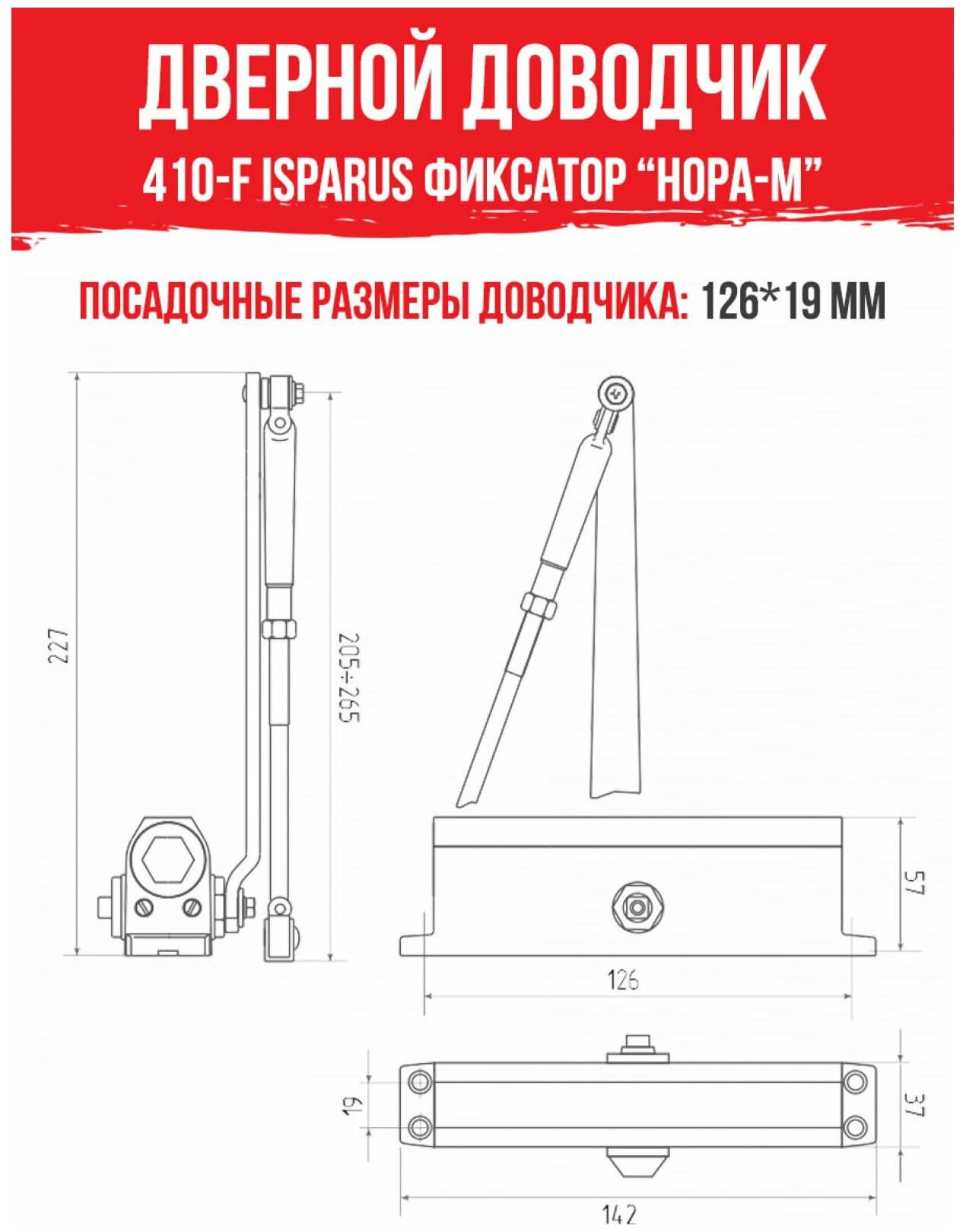 СохранитьДоводчик дверной Нора-М Isparus 410F (морозостойкий с фиксацией для дверей 15-60кг) - Серебро интересное: