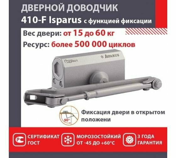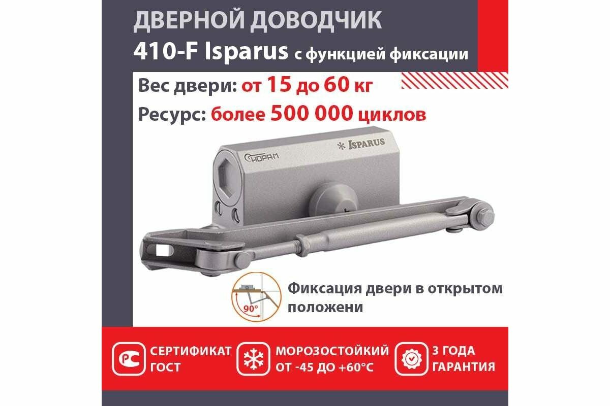 Доводчик ISPARUS 410 F фиксация (от 15 до 60кг) (сереб.) (шт.)