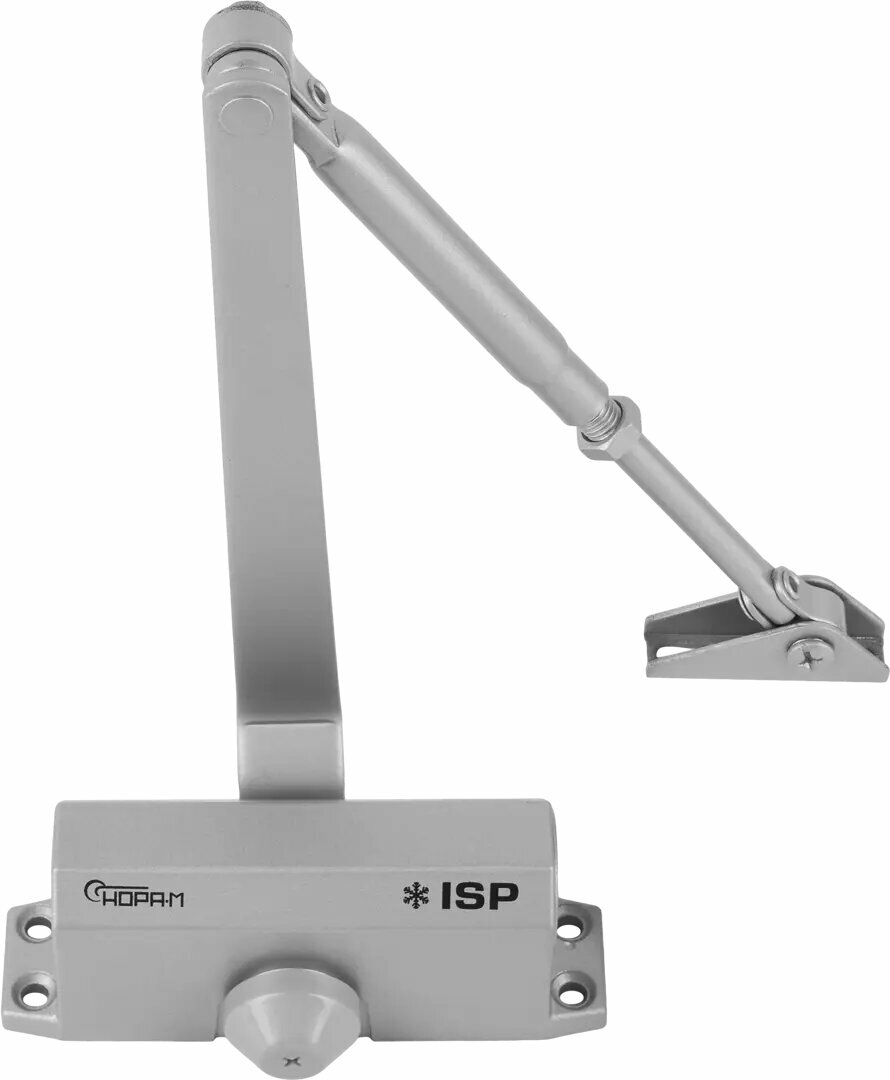 Доводчик дверной Нора-М Isparus 410F (морозостойкий с фиксацией для дверей 15-60кг) - Серебро