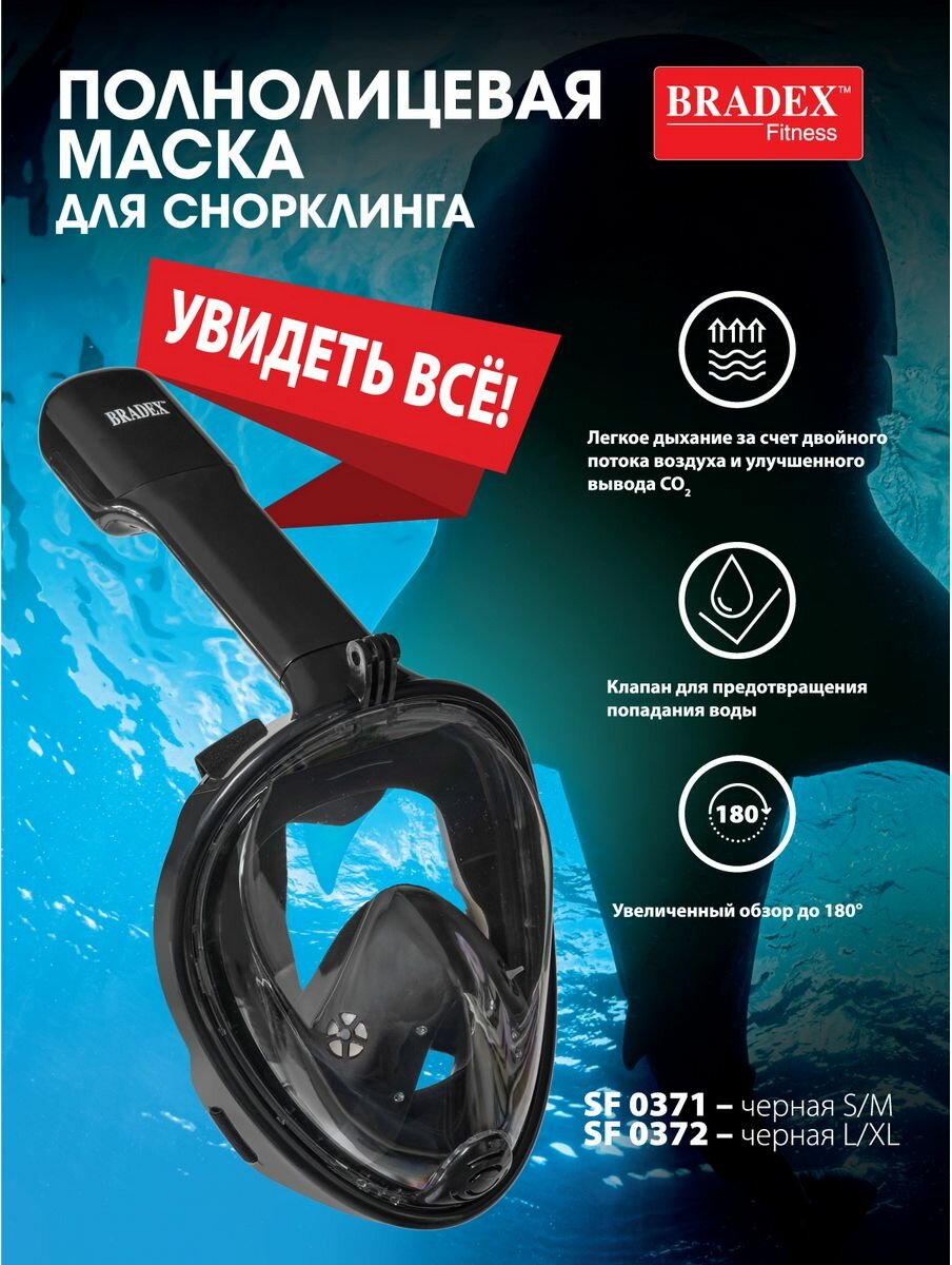 Купить BRADEX Маска для плавания и снорклинга с креплением для экшн-камеры, черная, S,M, BRADEX