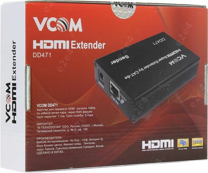 VCOM DD471 Удлинитель HDMI по витой паре до 60м extender VCOM DD471 +2б.п. интересное: