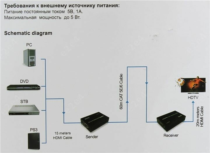 | Дополнительная информация | для передачи HDMI сигнала 1080p по кабелю витая пара через RJ-45 разъем |