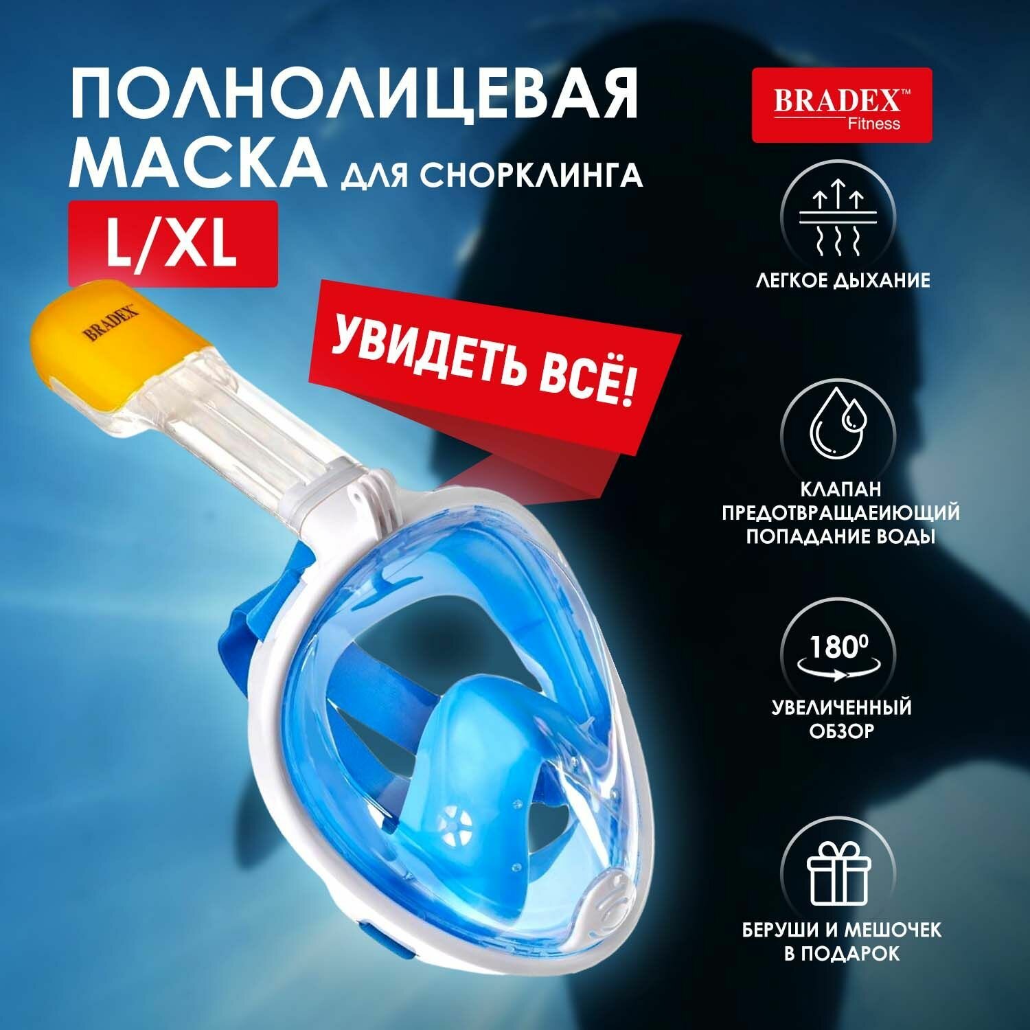 Купить Маска Bradex полнолицевая для снорклинга, голубая S