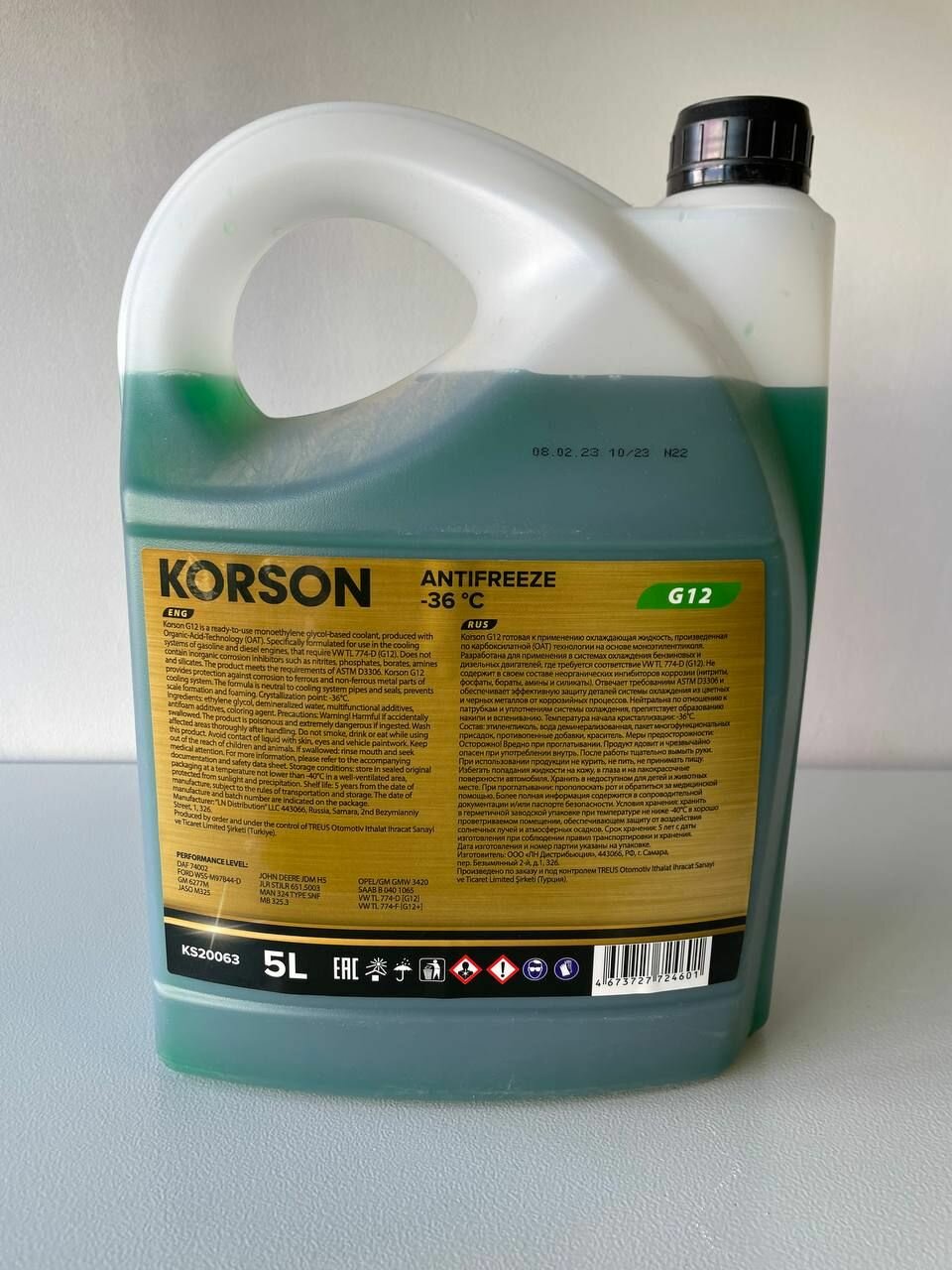 Ниже Вы можете прочитать отзывы на Ks20063 Антифриз, Готовый Раствор G12 -36 Зеленый 5Л Korson Korson арт. KS20063, ознакомится с подробными характеристиками, посмотреть интересные обзоры и фотографии на Ks20063 Антифриз, Готовый Раствор G12 -36 Зеленый 5Л Korson Korson арт. KS20063.
