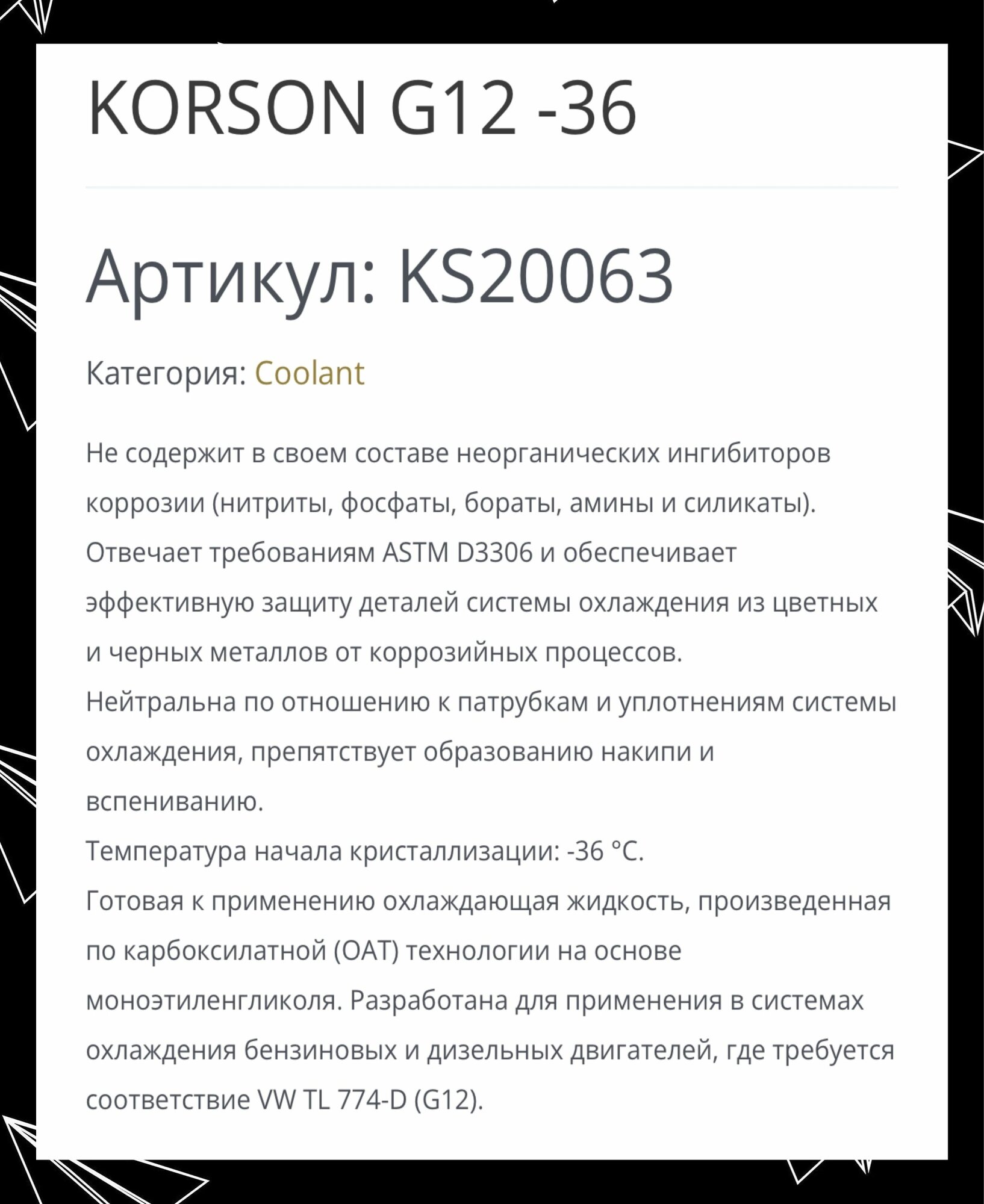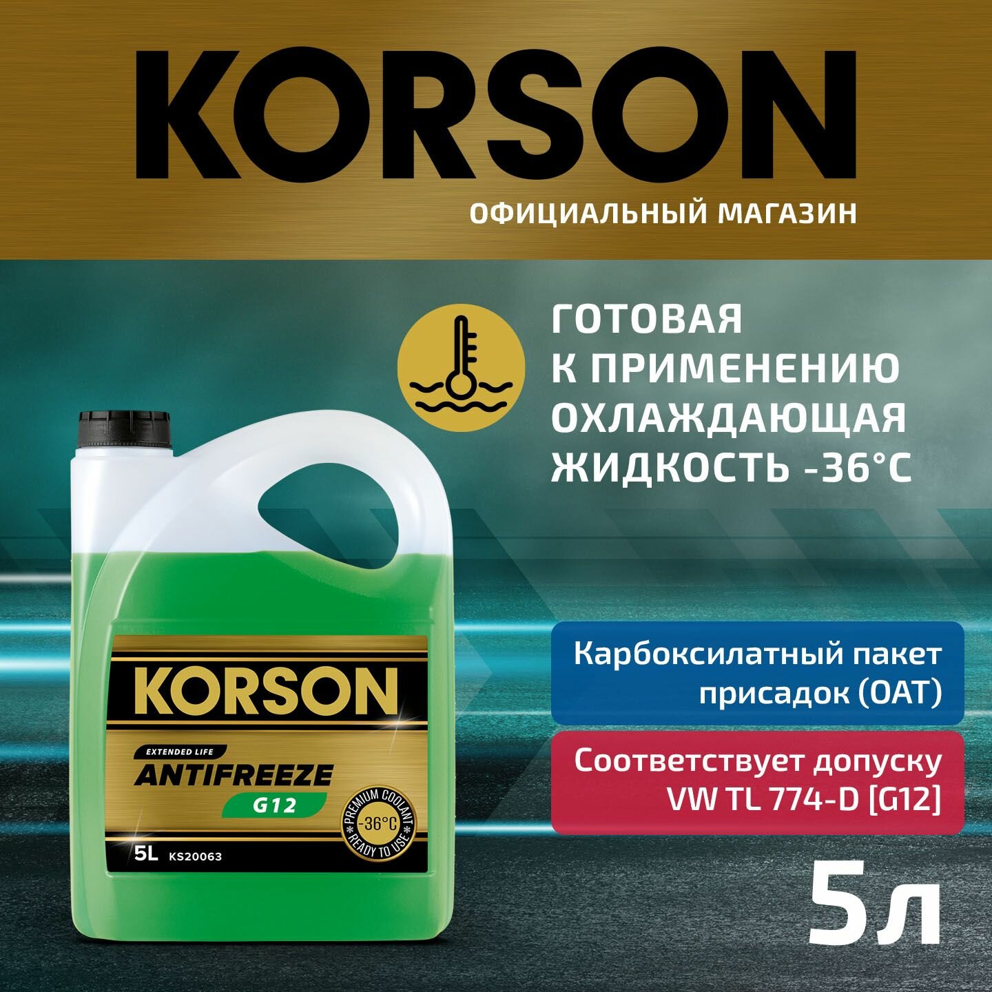 Ks20063 Антифриз, Готовый Раствор G12 -36 Зеленый 5Л Korson Korson арт. KS20063 интересное: