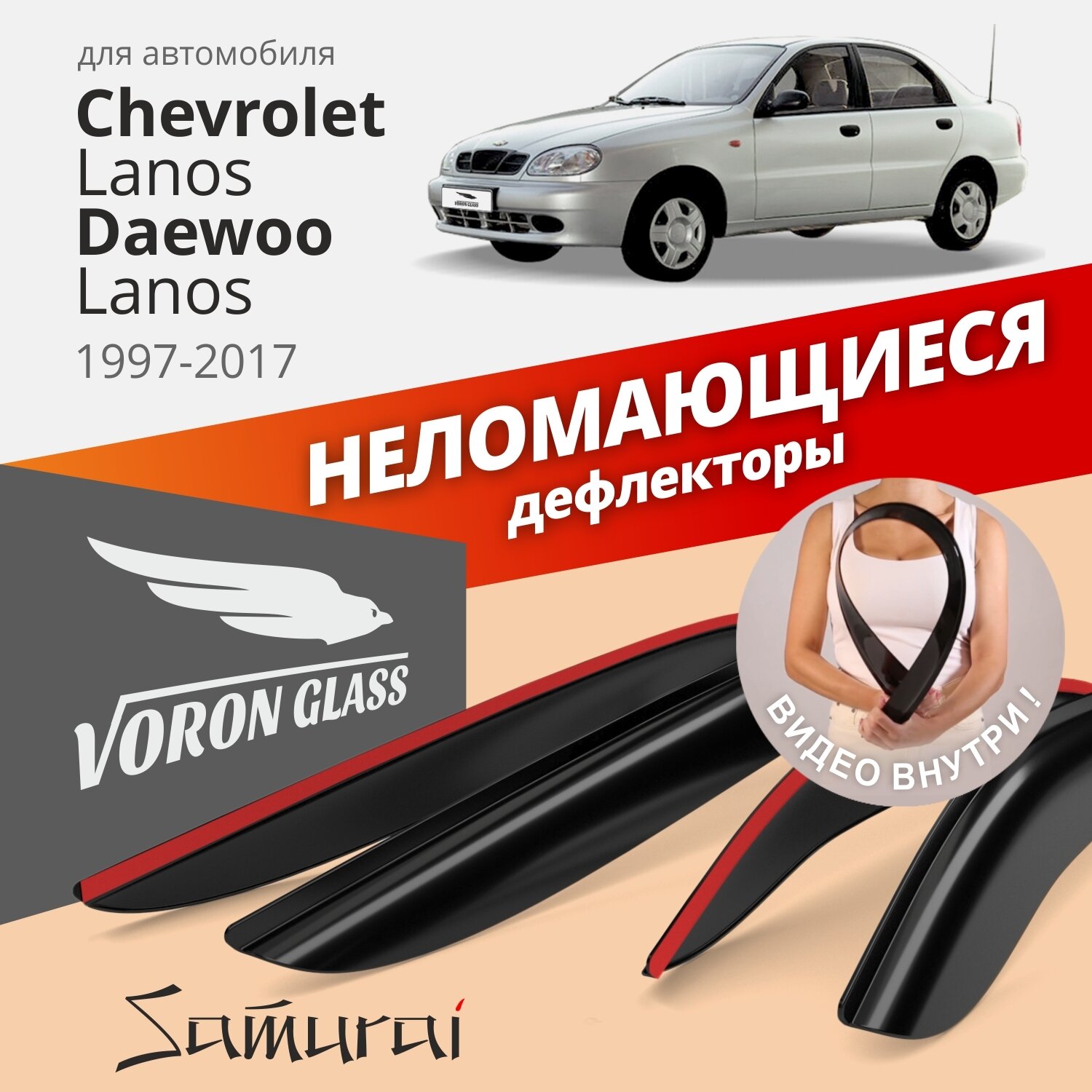 Дефлекторы окон неломающиеся Voron Glass серия Samurai для CHEVROLET LANOS 1997-2009 накладные 4 шт.