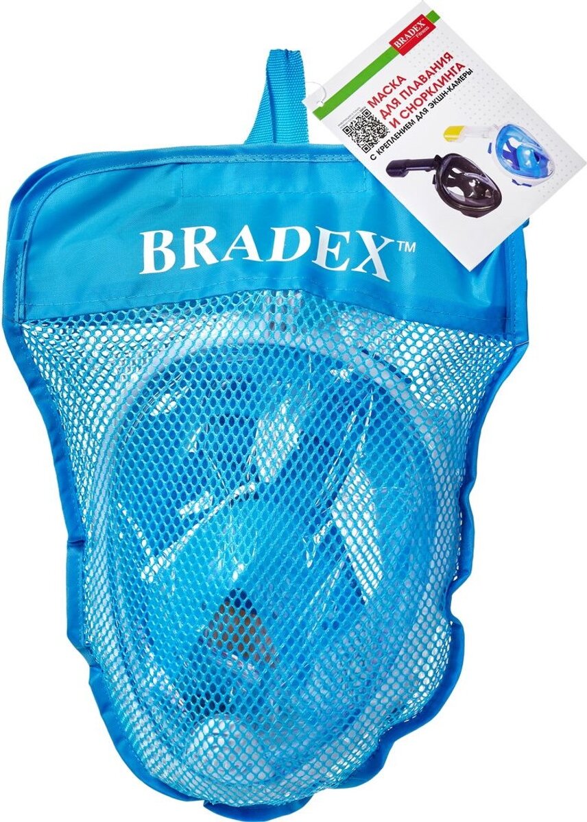 Купить BRADEX Маска для плавания и снорклинга с креплением для экшн-камеры, голубая, L,XL, BRADEX