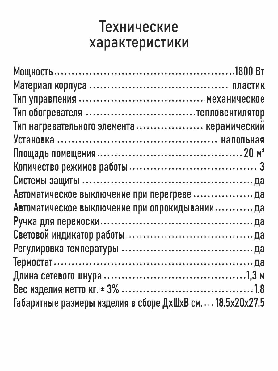 | Тип обогревателя | тепловентилятор |