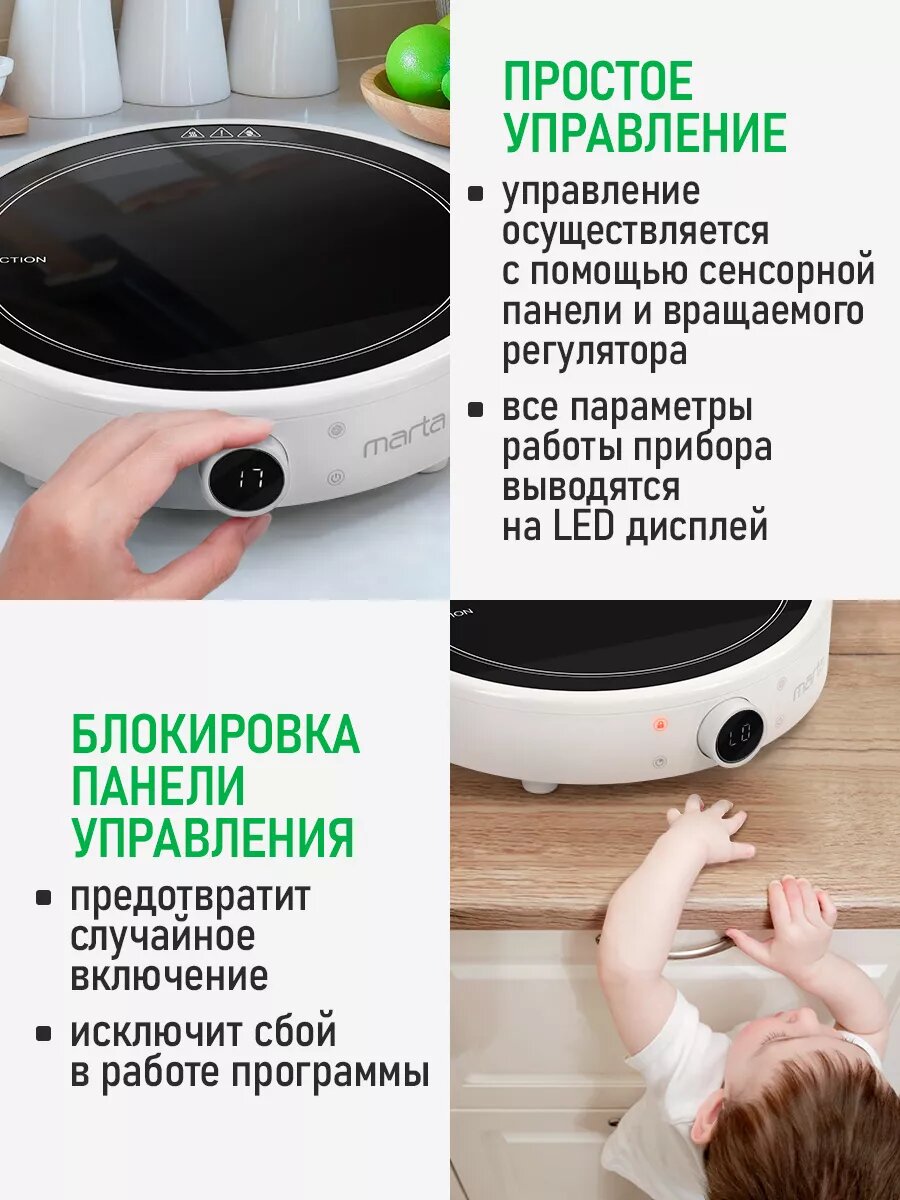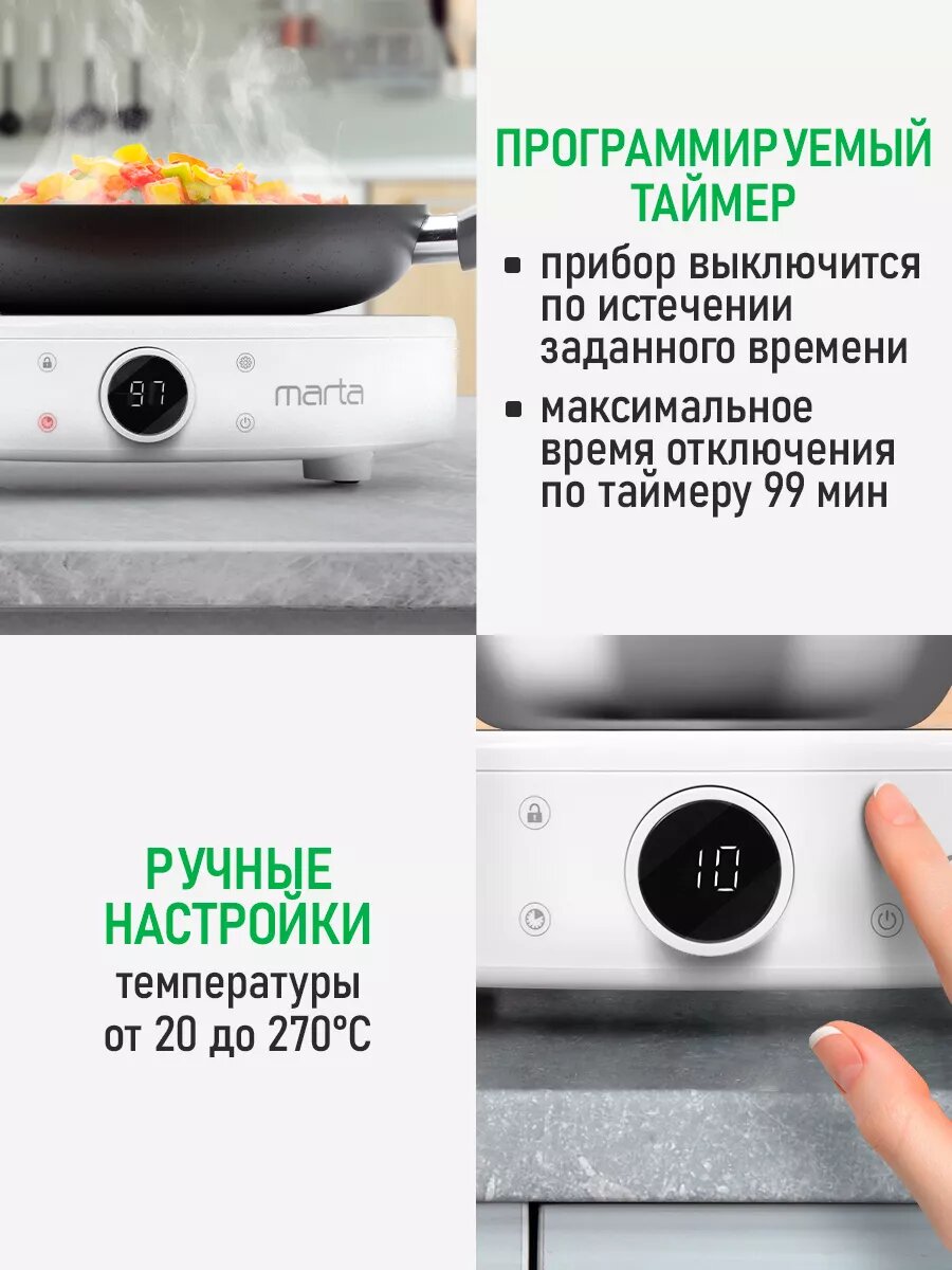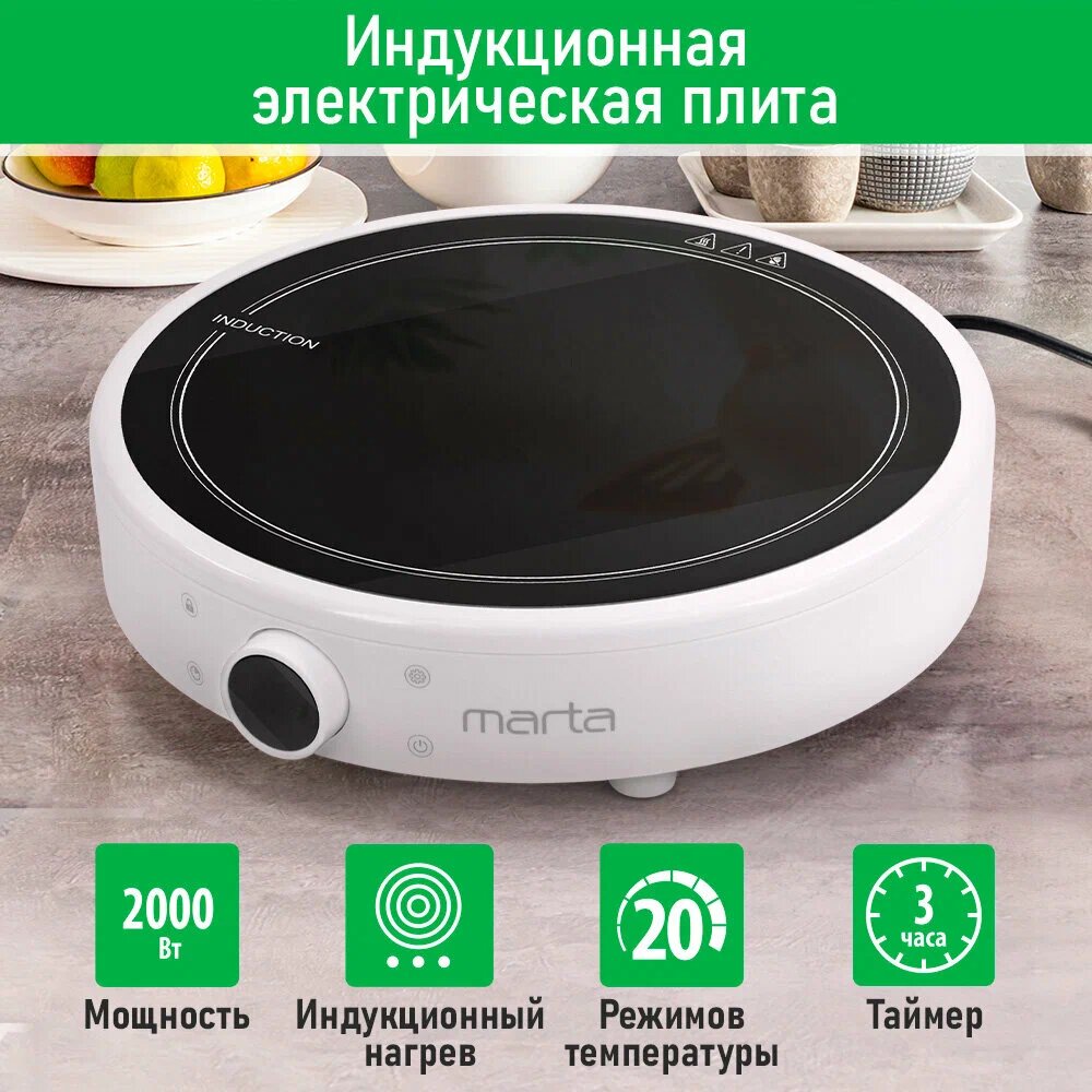Электрическая индукционная безимпульсная плитка MARTA MT-HP4222A белый