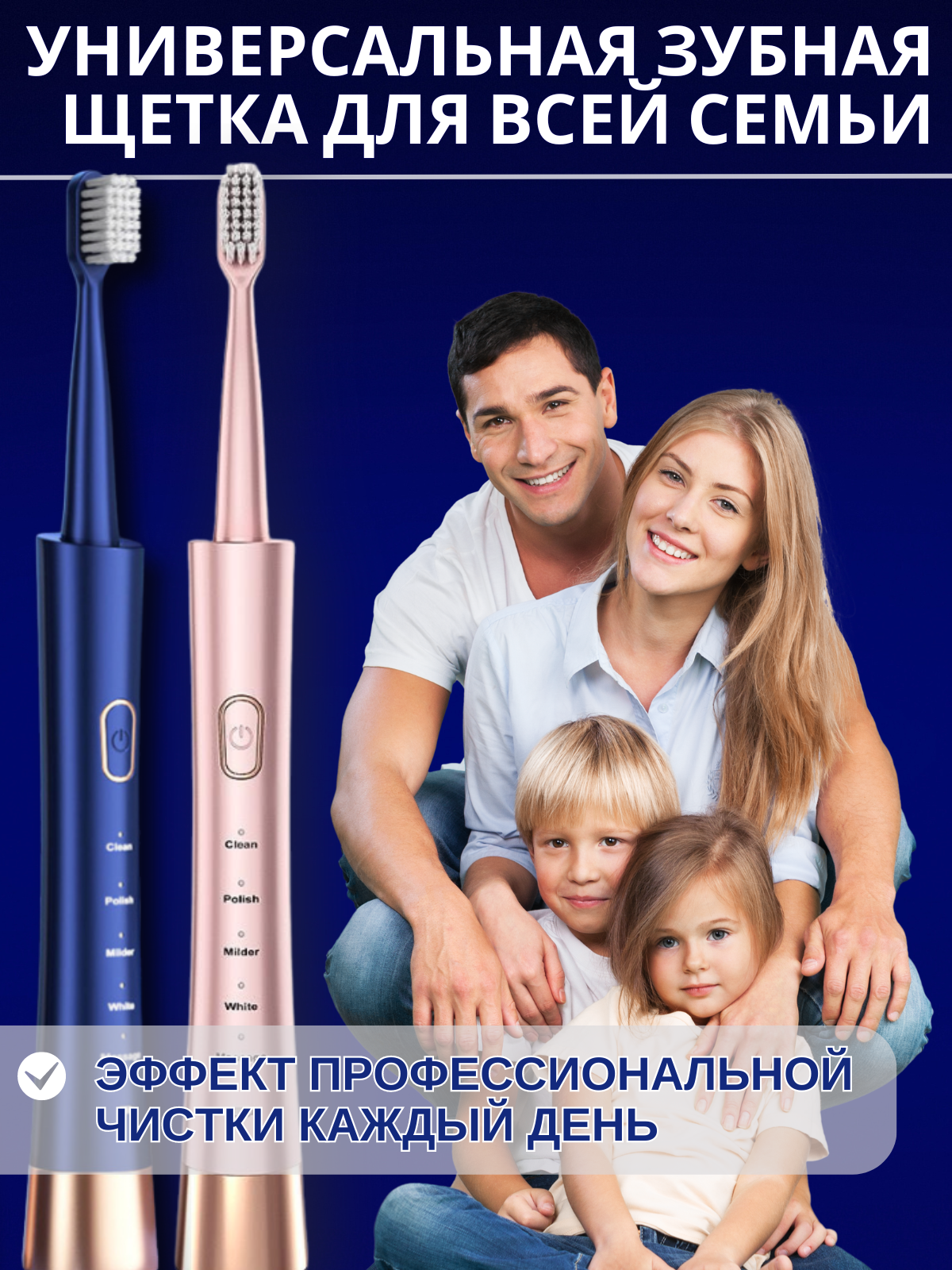 Электрическая зубная щетка для взрослых и детей с насадками