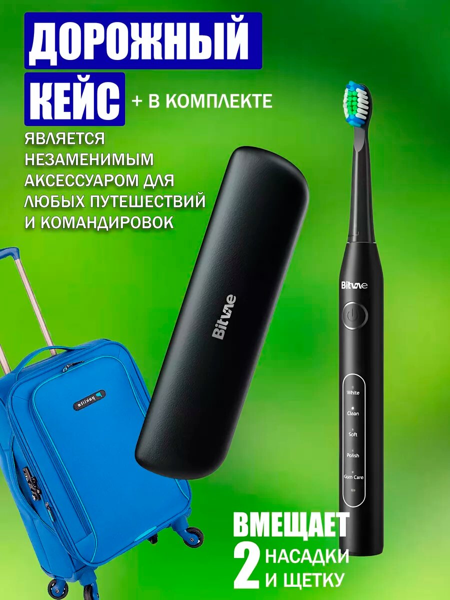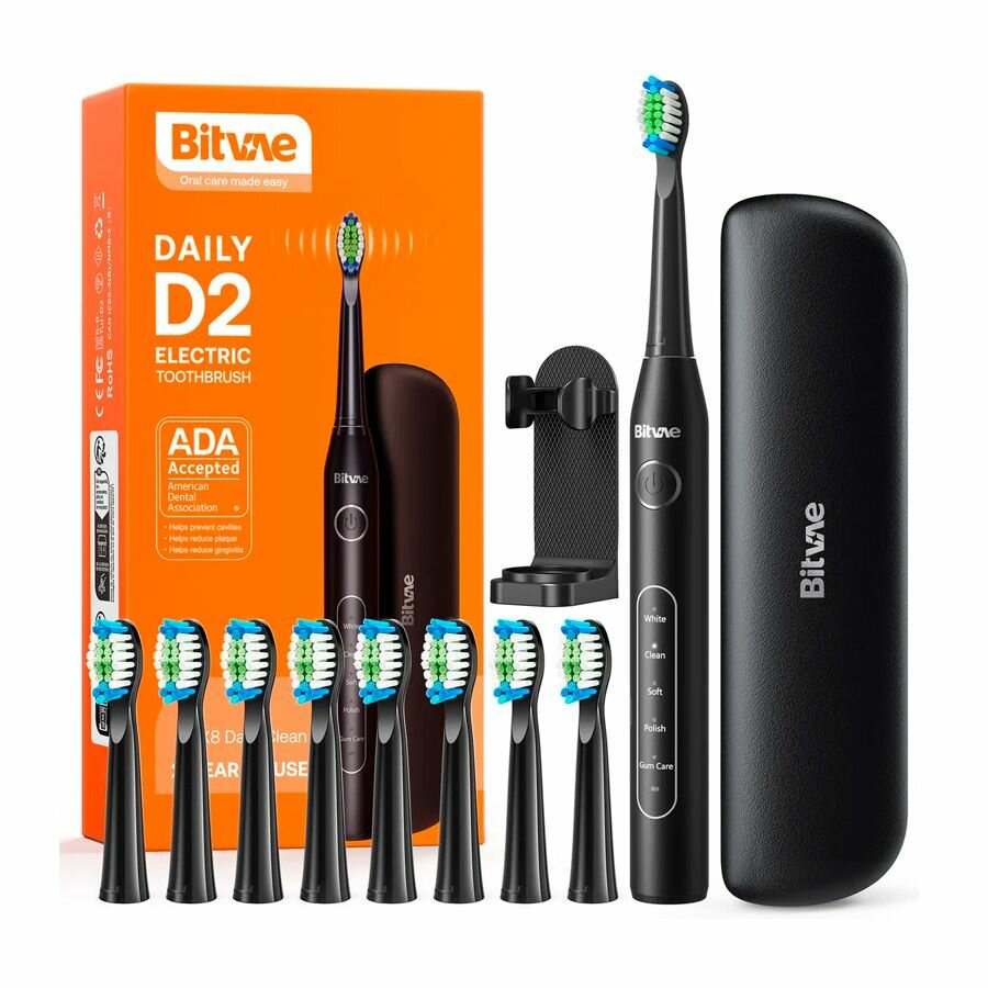 Купить Зубная щётка электрическая Bitvae D2 Daily Toothbrush (Футляр + подставка + 8 насадок + колпачок для насадок), черная