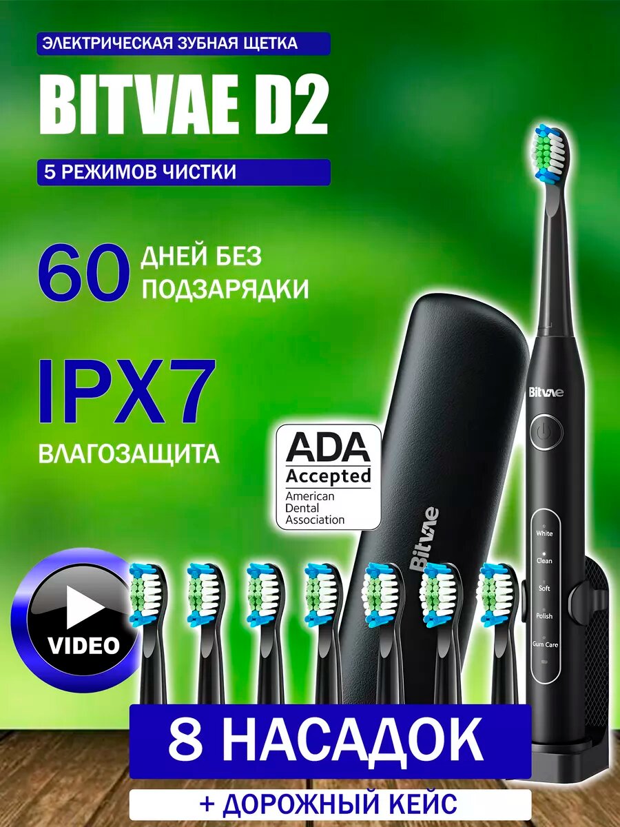 Ниже Вы можете прочитать отзывы на Зубная щётка электрическая Bitvae D2 Daily Toothbrush (Футляр + подставка + 8 насадок + колпачок для насадок), черная, ознакомится с подробными характеристиками, посмотреть интересные обзоры и фотографии на Зубная щётка электрическая Bitvae D2 Daily Toothbrush (Футляр + подставка + 8 насадок + колпачок для насадок), черная.