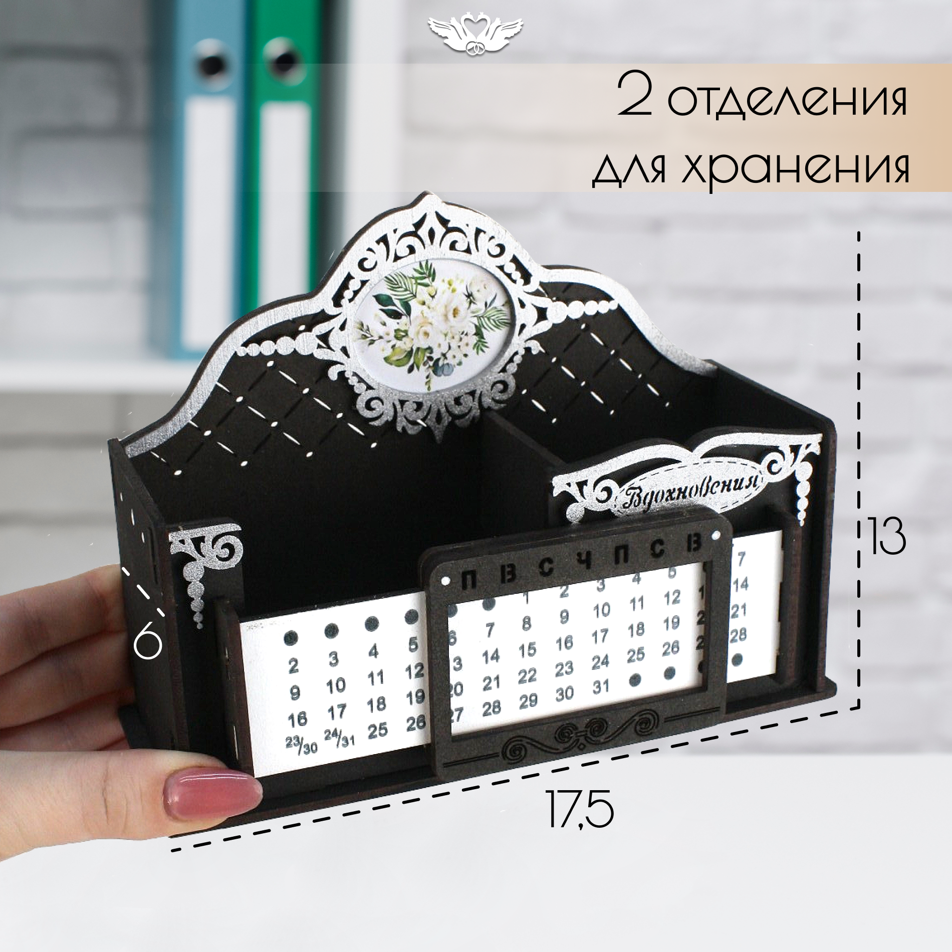 | В комплекте | Карандашница с вечным календарём. МДФ, фанера, окраш. морилкой, 1 шт. |