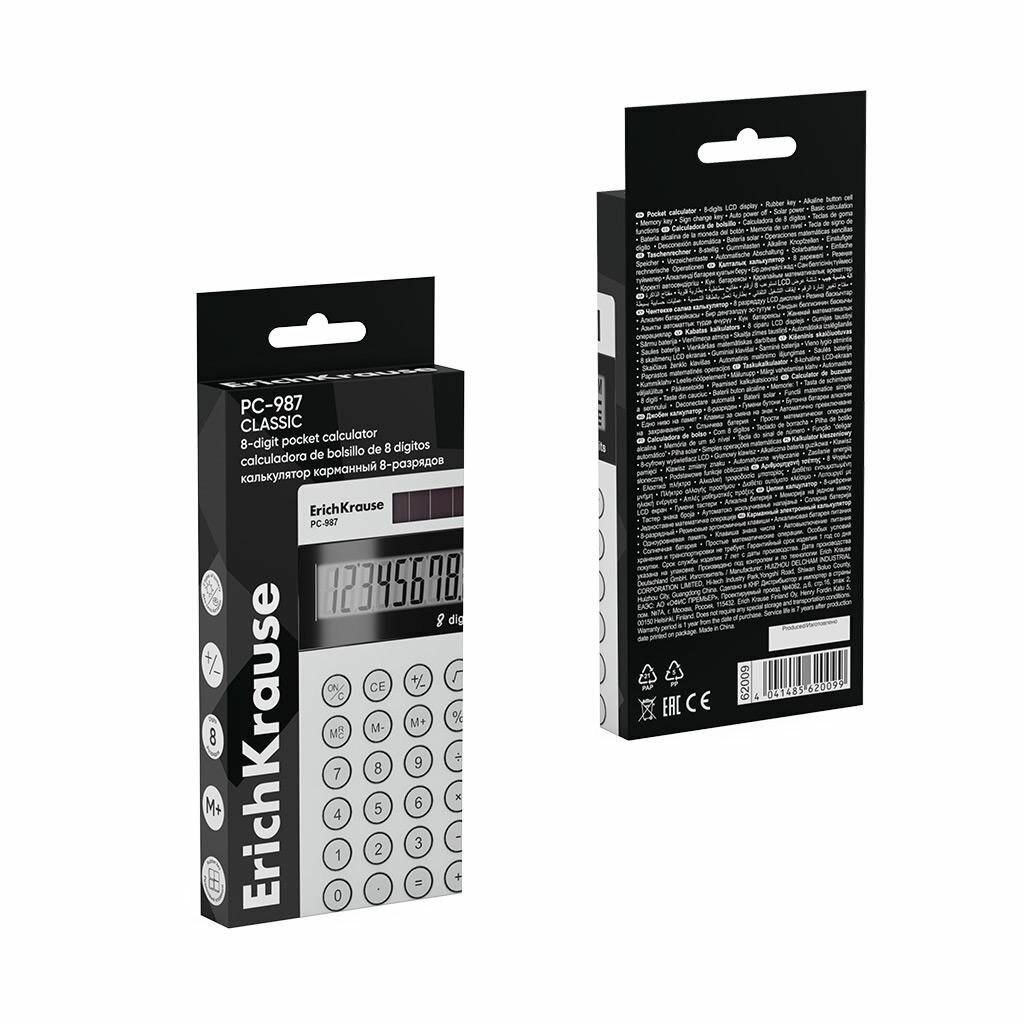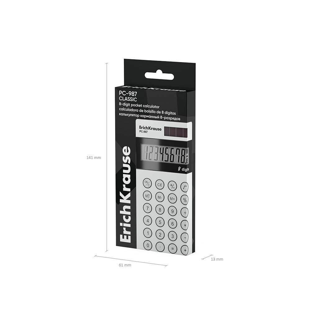 Калькулятор карманный 8-разрядов ErichKrause PC-987 Classic, белый (в коробке по 1 шт.) ErichKrause
