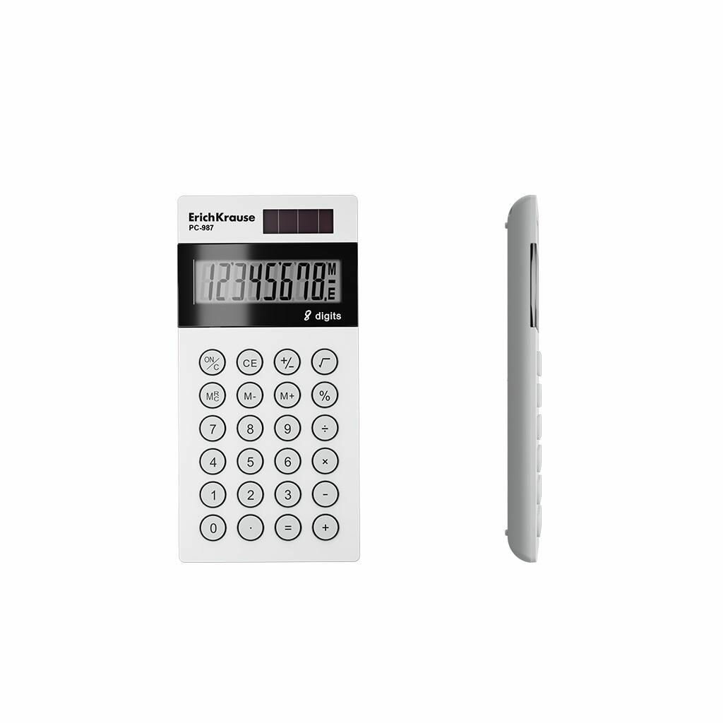 Калькулятор карманный 8-разрядный, PC-987, размер 120*58 мм, белый корпус. Erich Krause. интересное: