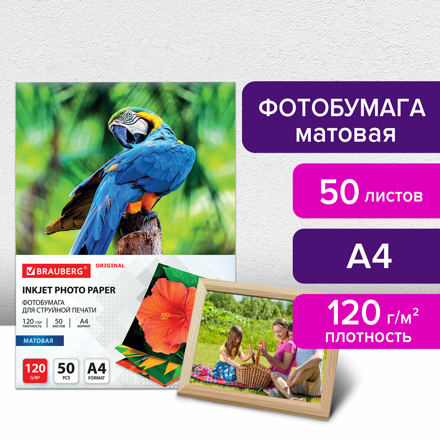 Фотобумага матовая, А4, 120 г/м2, односторонняя, 50 листов, BRAUBERG ORIGINAL, 363981 интересное: