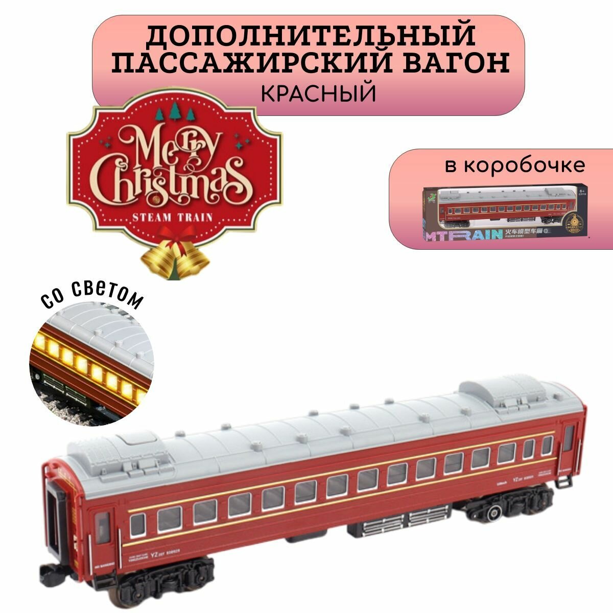 Купить Дополнительный красный пассажирский вагон со светом