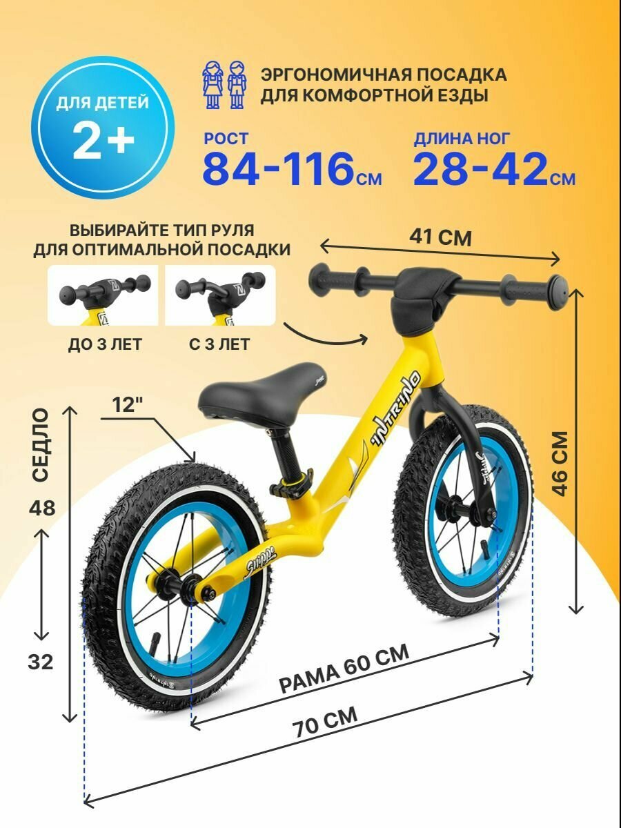 Купить Беговел Intrino Snippo детский 2+ с амортизацией, прямой руль жёлтый
