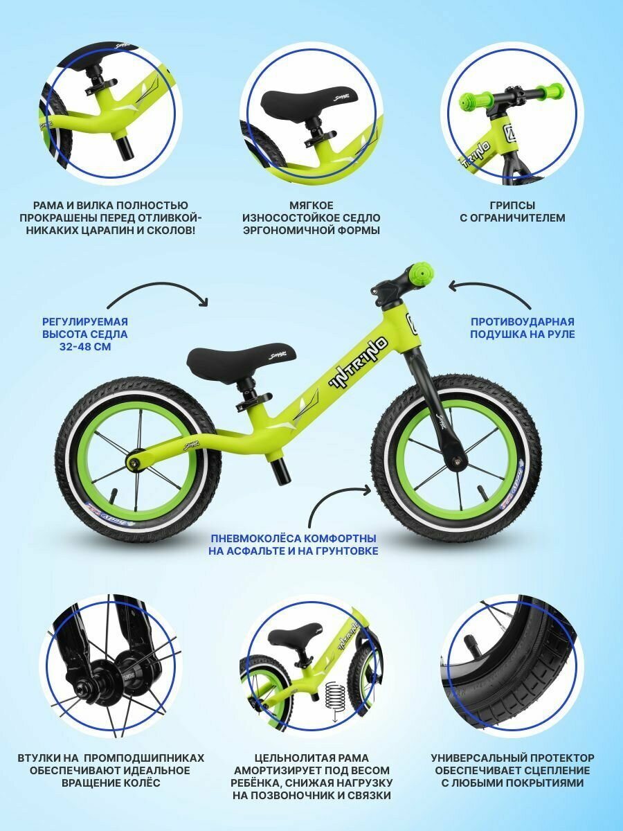 СохранитьБеговел Intrino Snippo детский 2+ с амортизацией, прямой руль салатовый интересное: