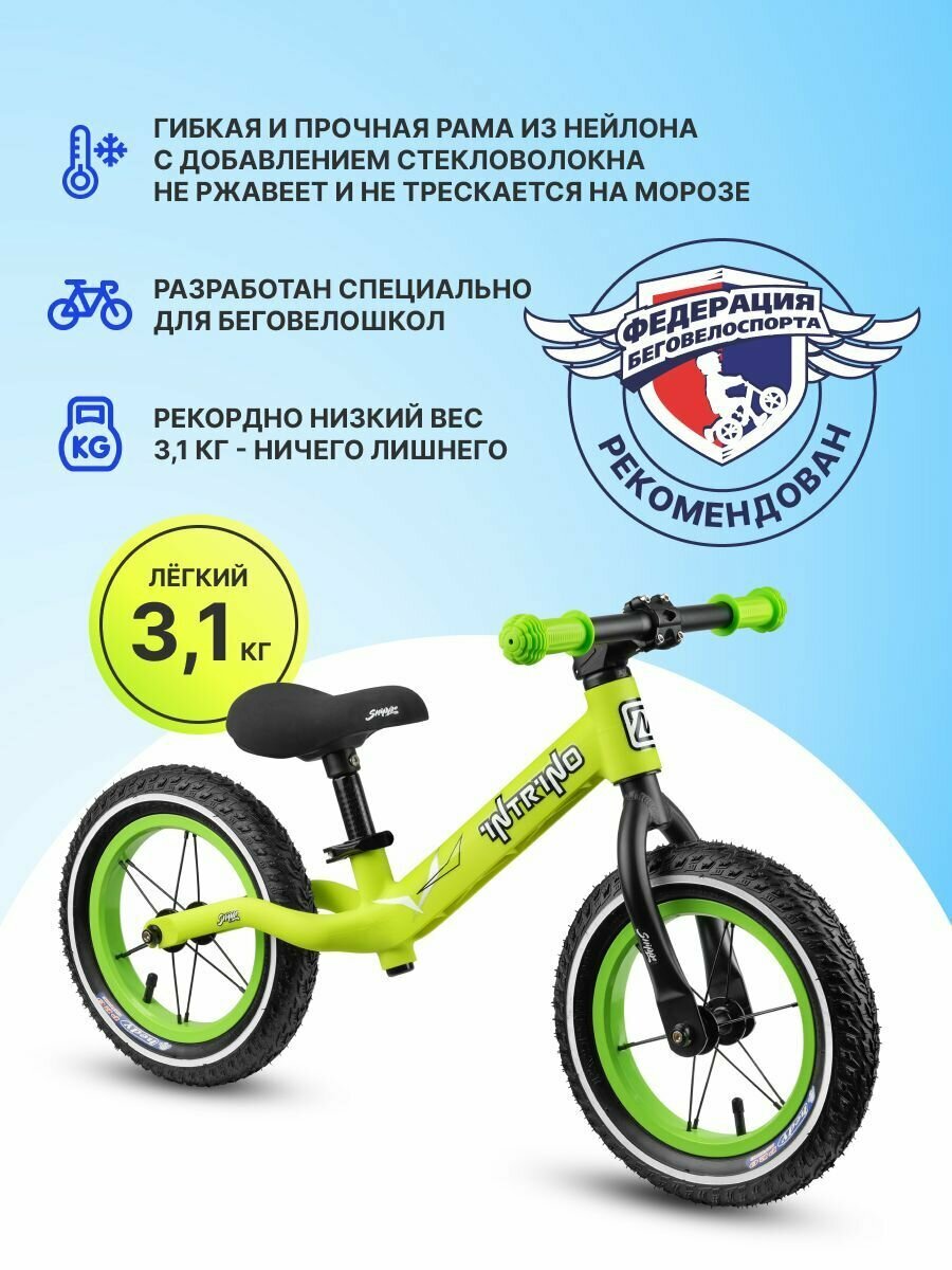 Купить Беговел Intrino Snippo детский 2+ с амортизацией, прямой руль салатовый