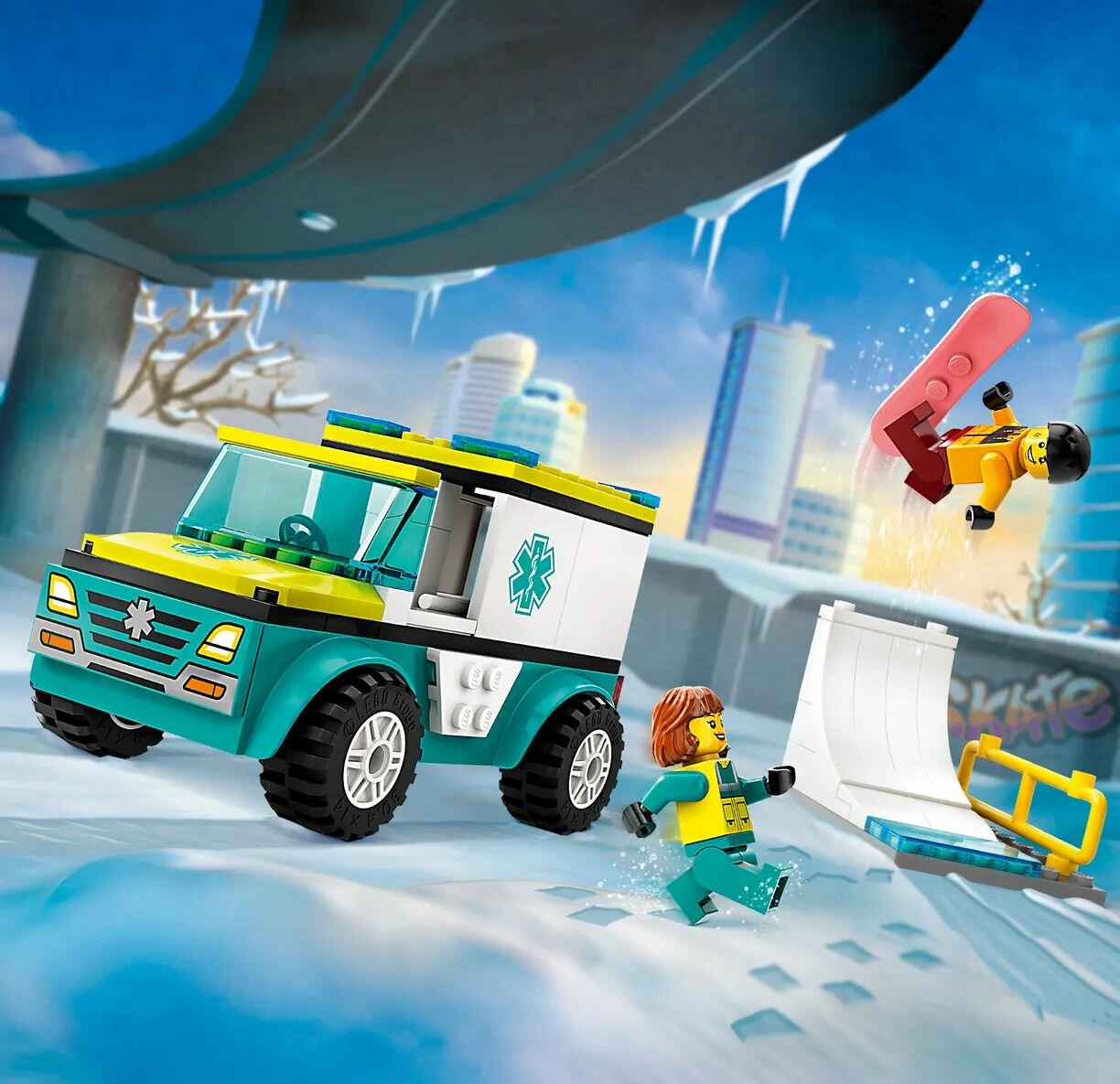 Купить Конструктор детский LEGO City Скорая помощь и сноубордист, 79 деталей, возраст 4+