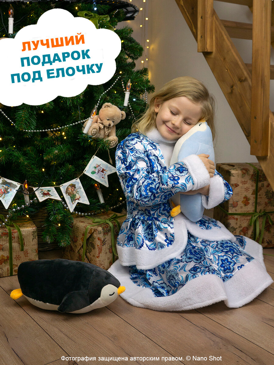Пингвин с пингвинёнком 2 в 1 мягкая игрушка подушка, 55 см, голубой