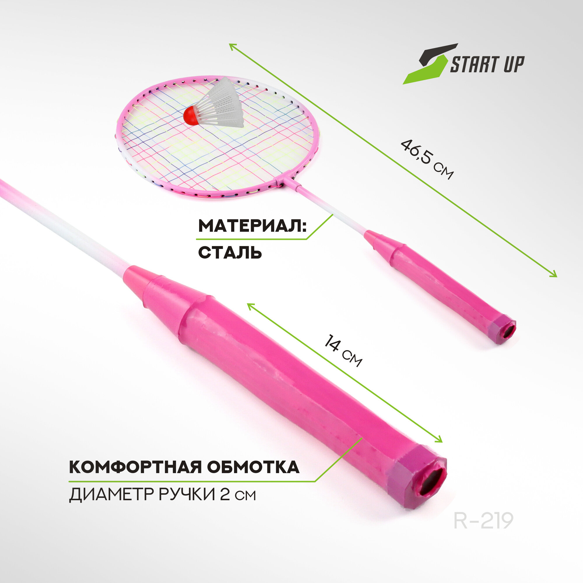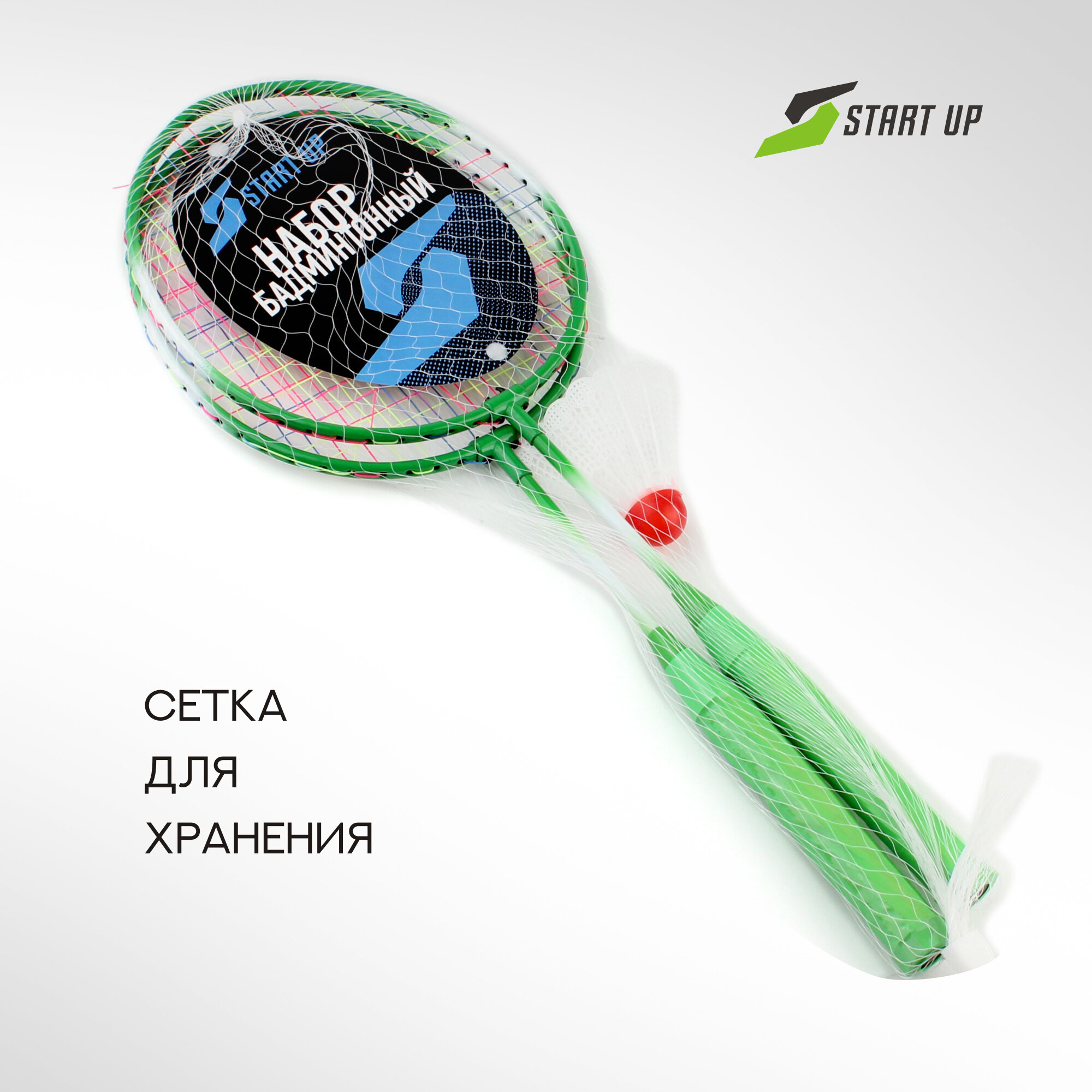 Набор для бадминтона Start UP R-219 (2 ракетки, волан, чехол), зеленый, голубой, розовый