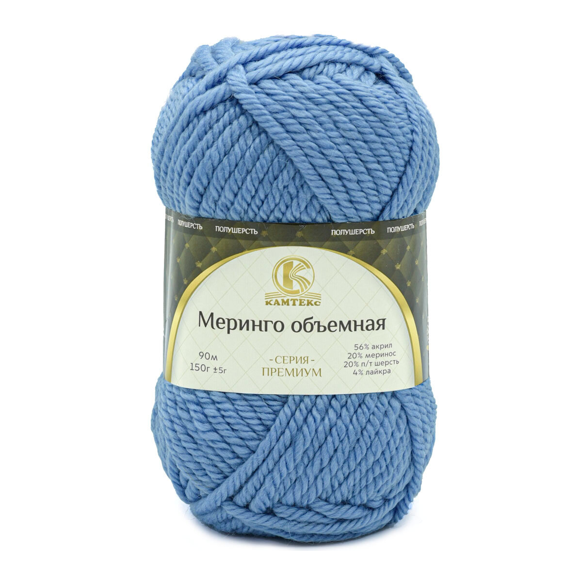 Пряжа для вязания Камтекс 'Меринго объемная', 150г, 90м (20% меринос, 20% полутонкая шерсть, 56% акрил, 4% лайкра) (015 голубой), 4 мотка