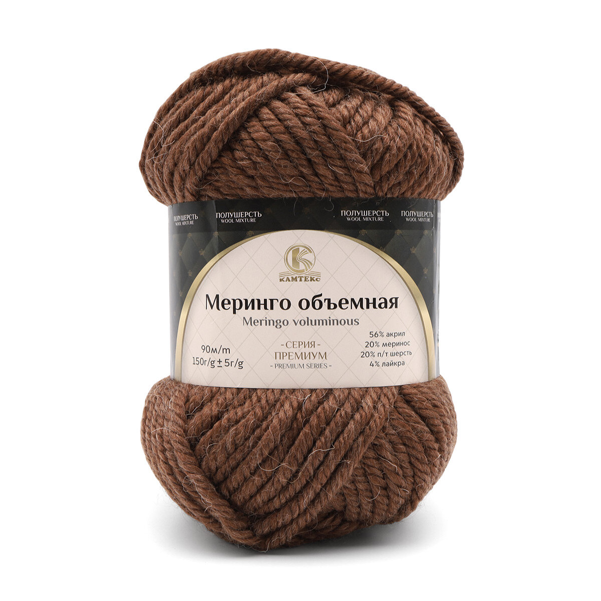 Пряжа для вязания Камтекс 'Меринго объемная', 150г, 90м (20% меринос, 20% полутонкая шерсть, 56% акрил, 4% лайкра) (121 коричневый), 4 мотка