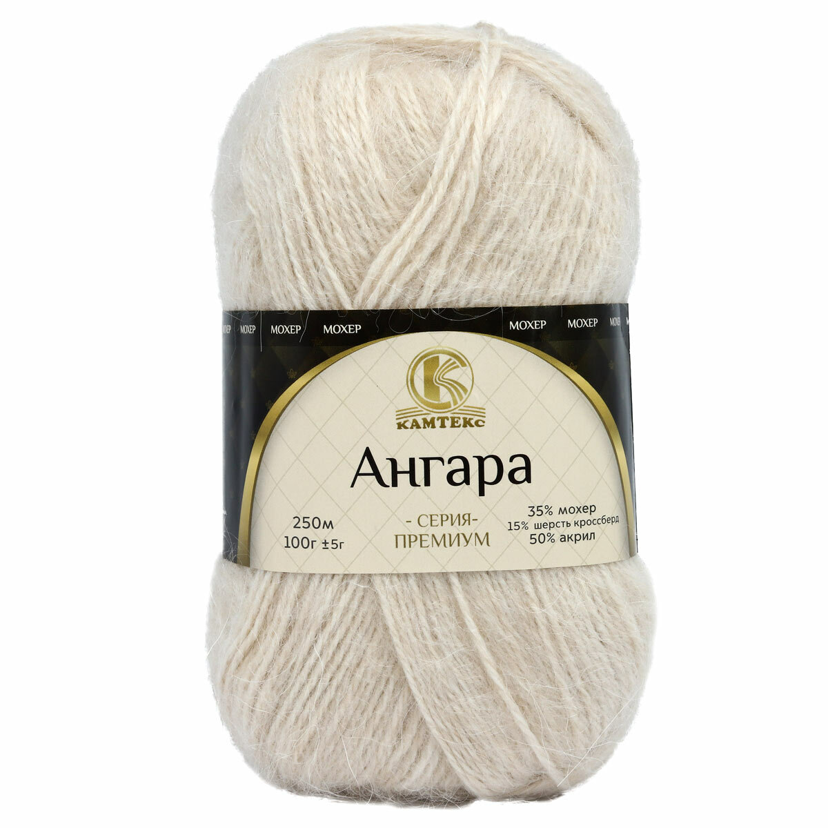 Пряжа Камтекс "Ангара", цвет: 080 - Экрю, 1 шт, Мохер 35%, Шерсть 15%, Акрил 50%, 100 г. 250 м.