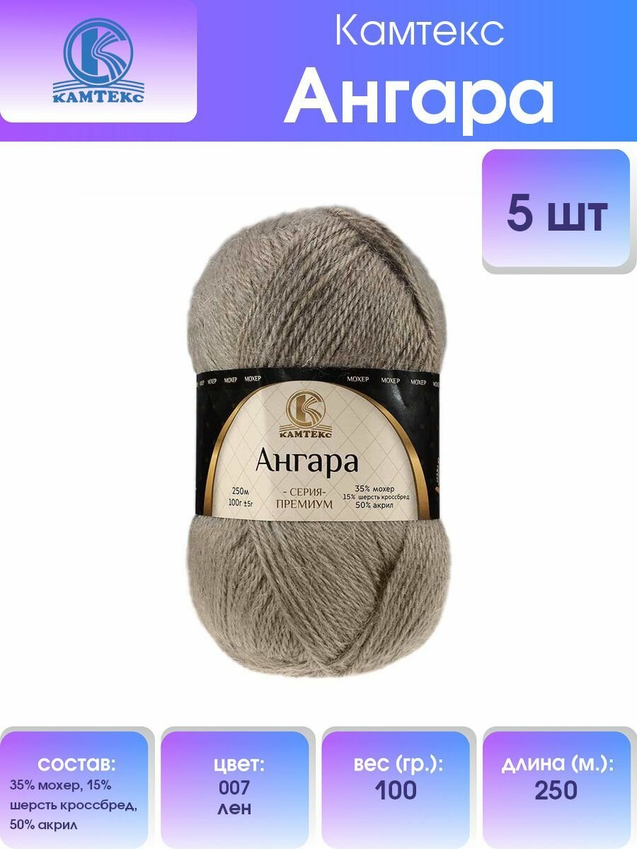 Пряжа Камтекс Ангара (007), лен, 5 шт. по 100 г