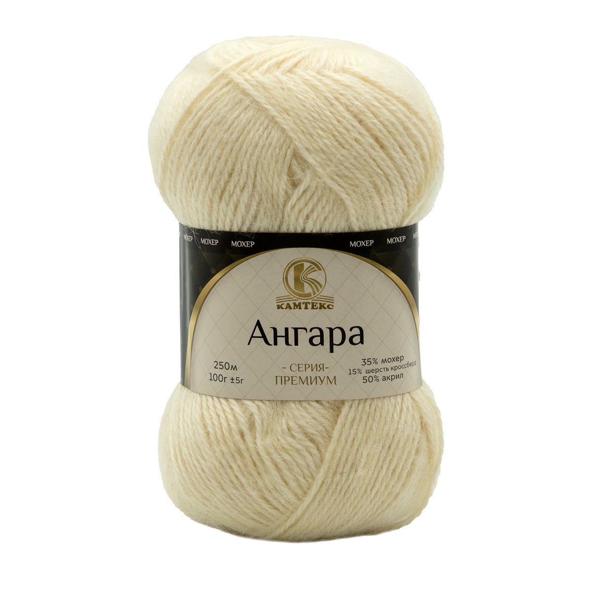 Пряжа Камтекс "Ангара", цвет: 188 - Топленое молоко, 2 шт., Мохер 35%, Шерсть 15%, Акрил 50%, 100 г. 250 м.