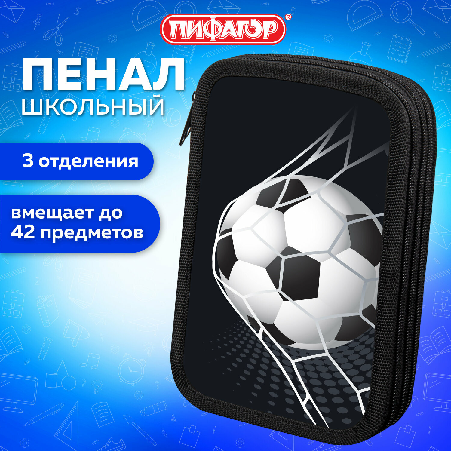 Пенал школьный для мальчика для ручек, карандашей Пифагор, 3 отделения, ламинированный картон, 19х11 см, Goal, 271547