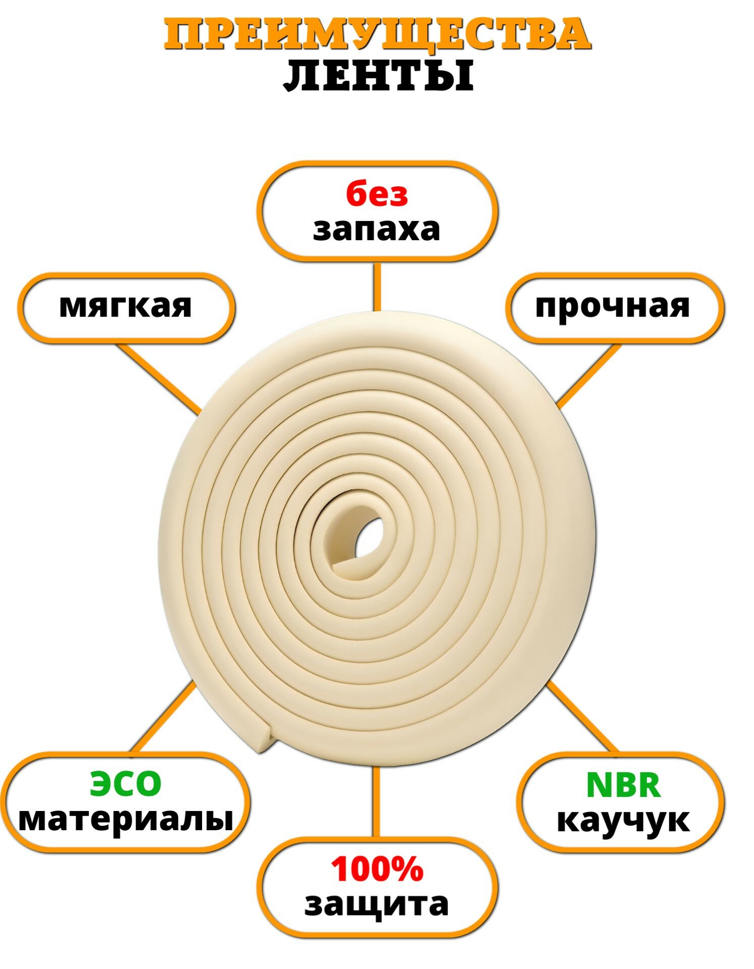 Защитная лента на углы Beideli 4 метра бежевый. Мягкая накладка на края мебели для детей от ударов интересное: