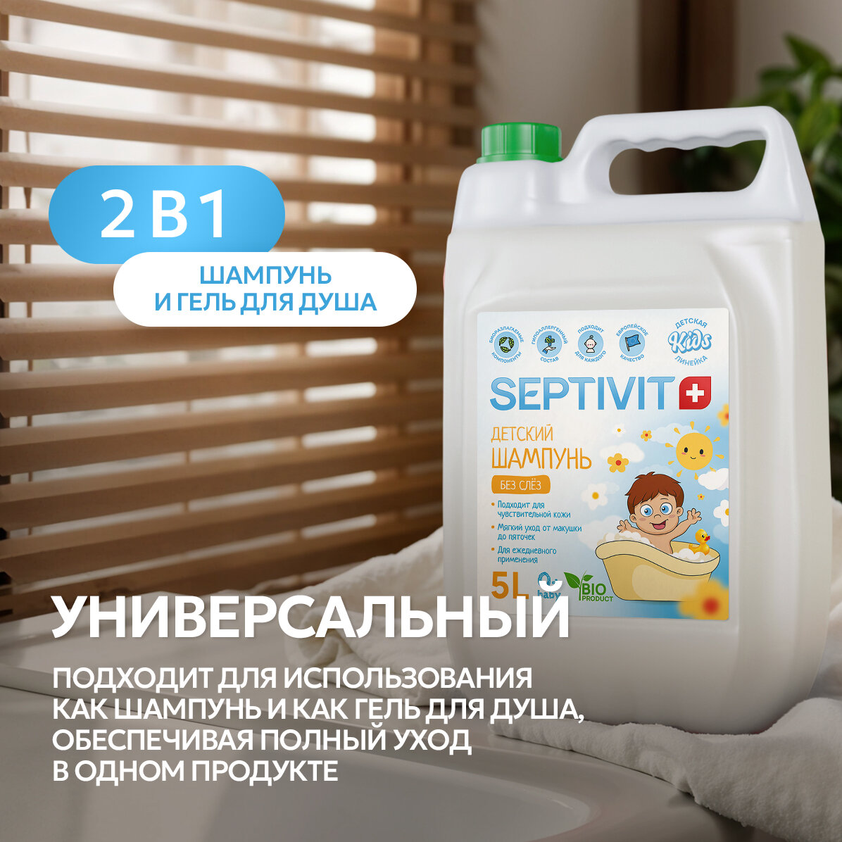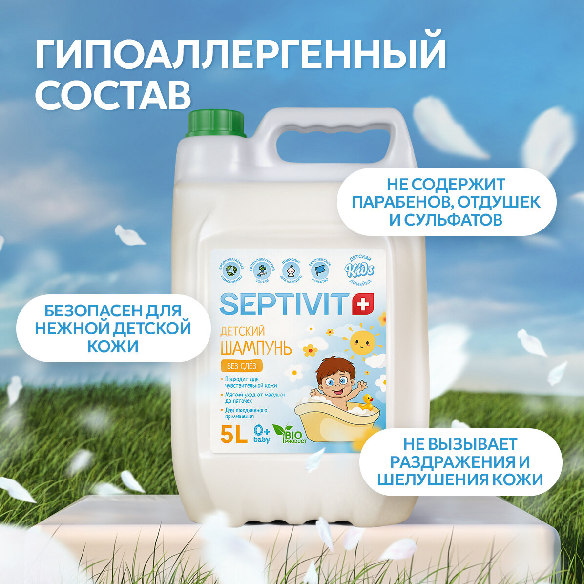 Детский шампунь без слез SEPTIVIT / Детский шампунь / Шампунь для детей 5 л интересное: