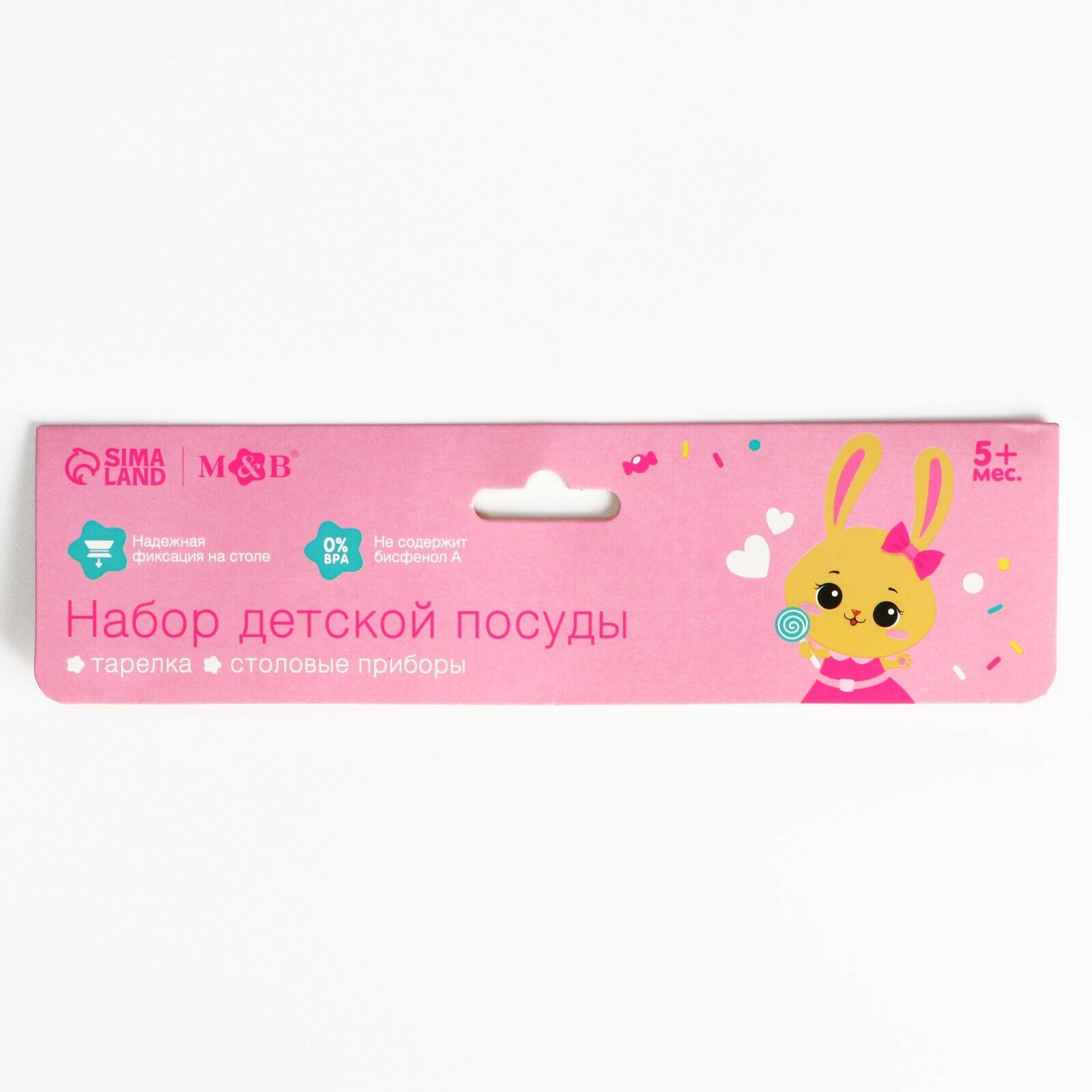 Купить Набор посуды "Зайка Полли" тарелка на присоске 250мл, вилка, ложка