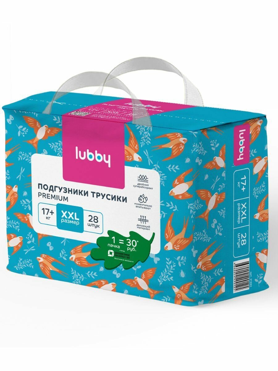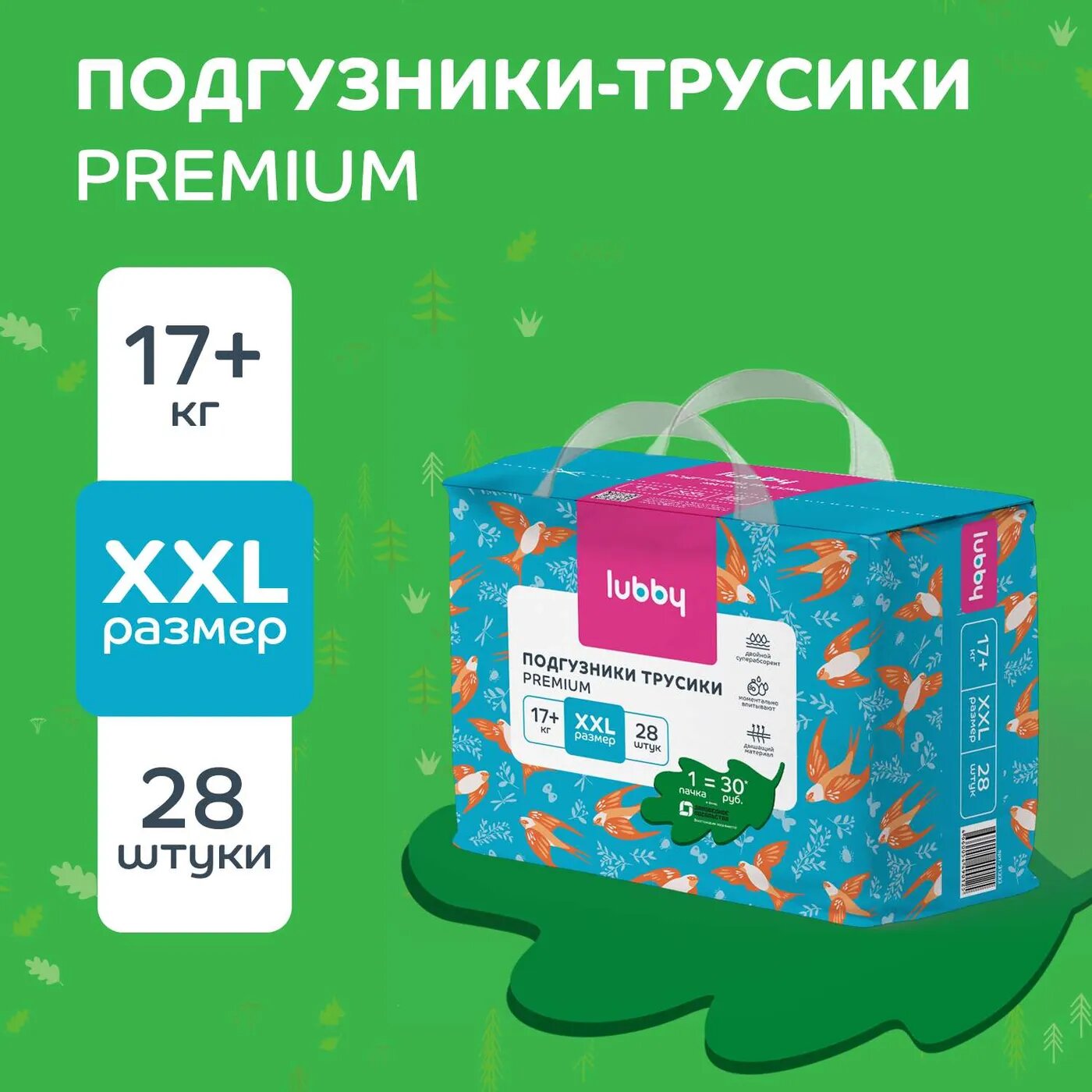 Подгузники-трусики для детей lubby PREMIUM, размер XXL (более 17 кг) с индикатором влаги, 28 шт в упаковке