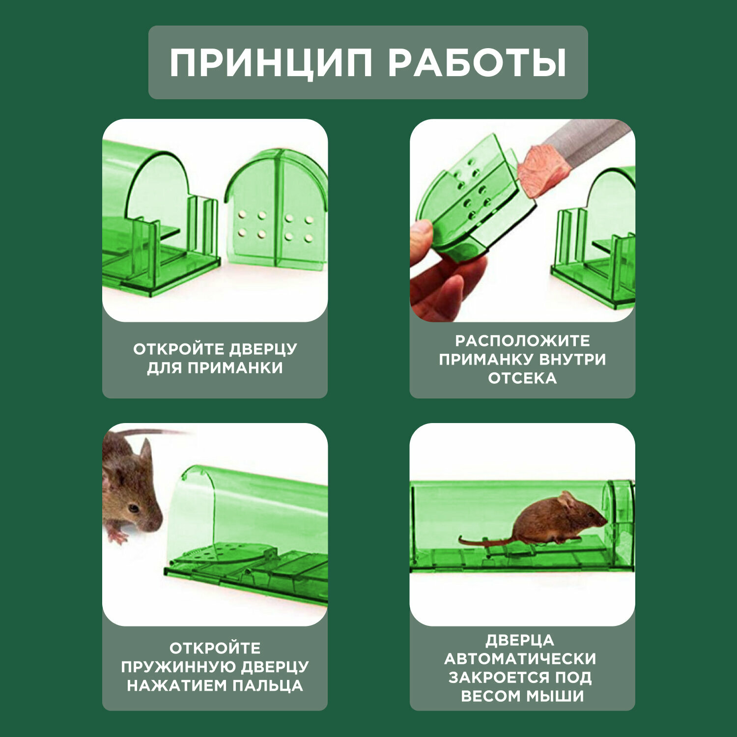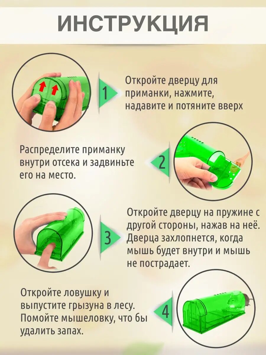 | Дополнительная информация | 2 шт в наборе, в подарок - ручки для переноски мышеловки |