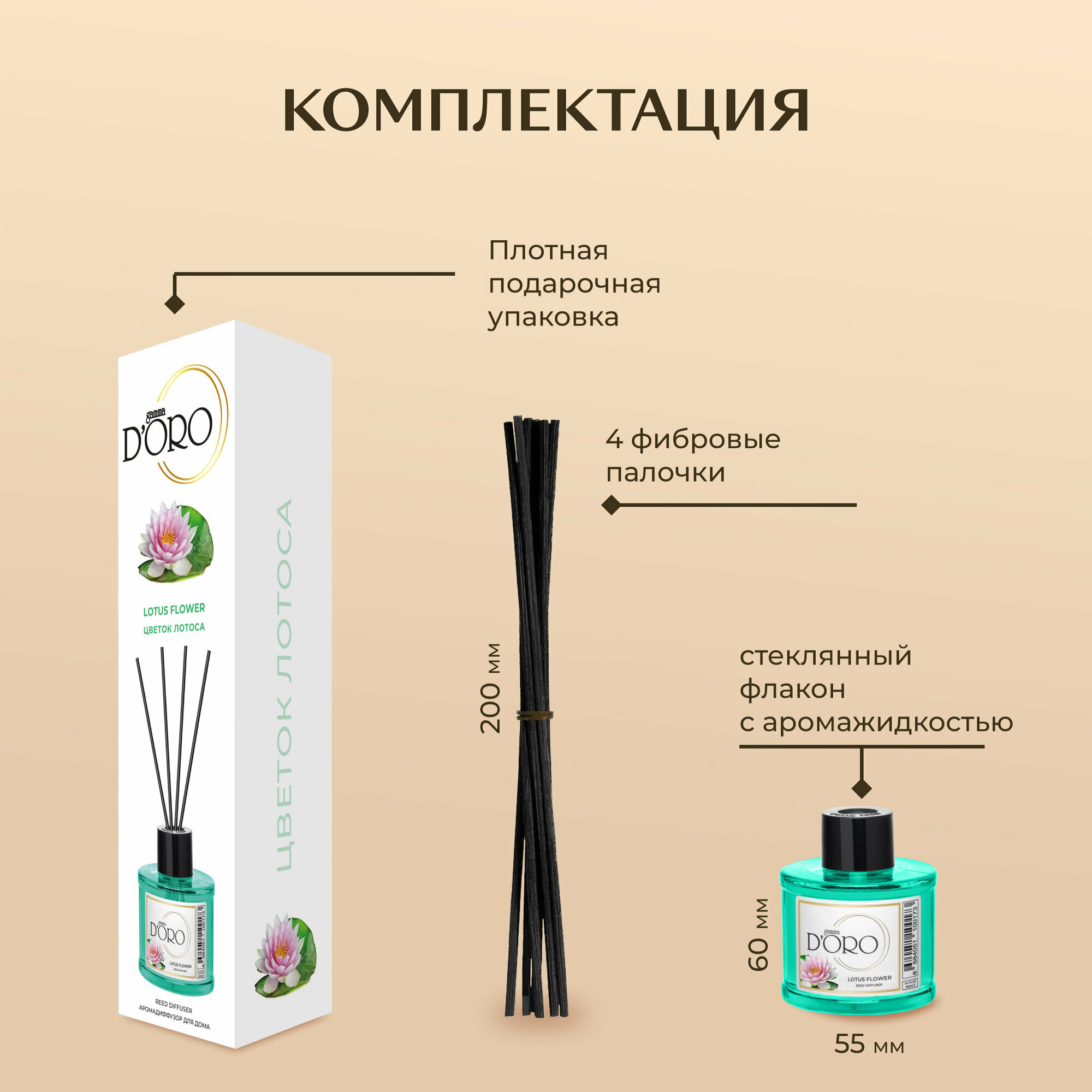 Диффузор для дома Gamma D'Oro Цветок лотоса 55 мл, аромадиффузор с палочками, ароматизатор освежитель воздуха