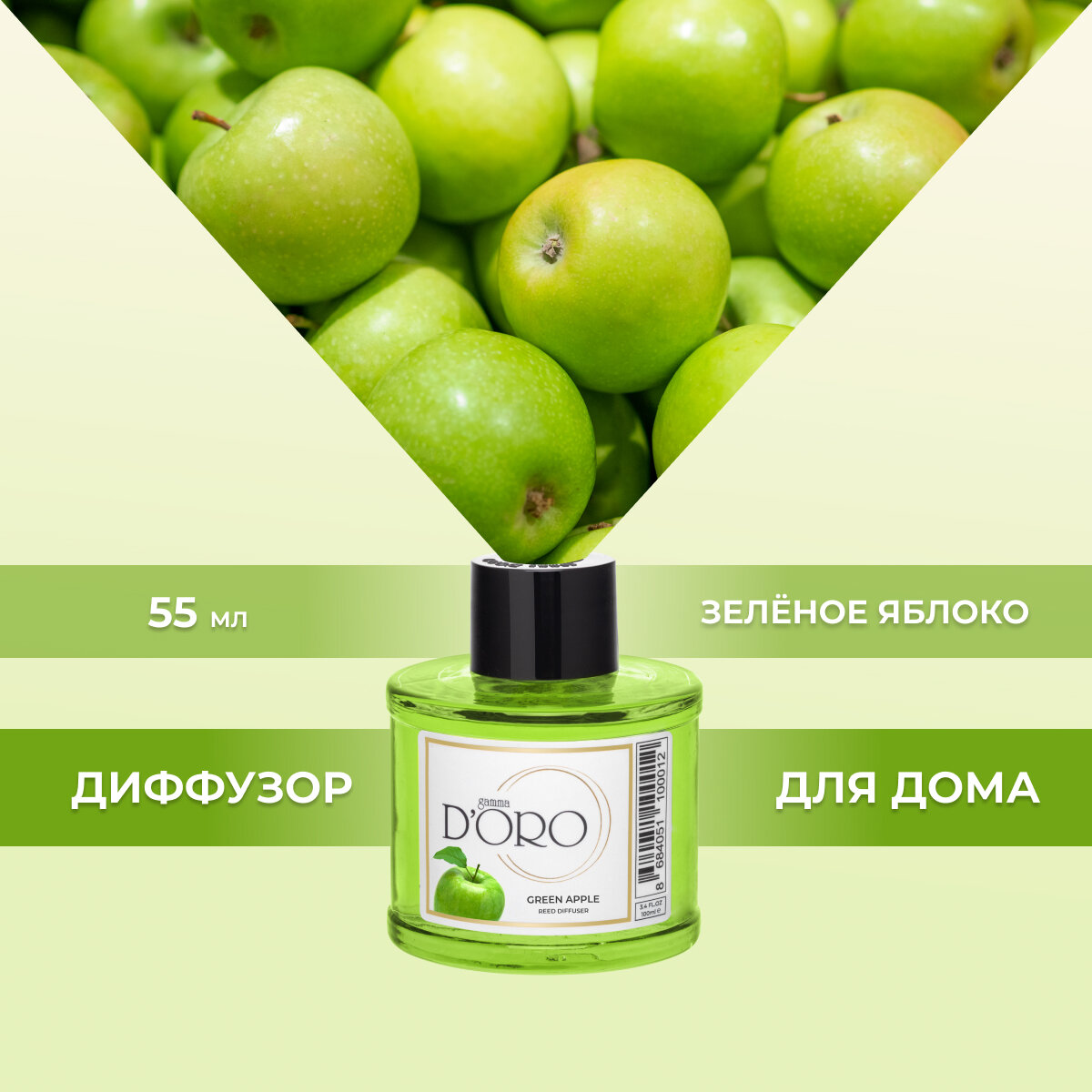 Купить Ароматический диффузор для дома с палочками GAMMA D’ORO Зеленое яблоко 55 мл