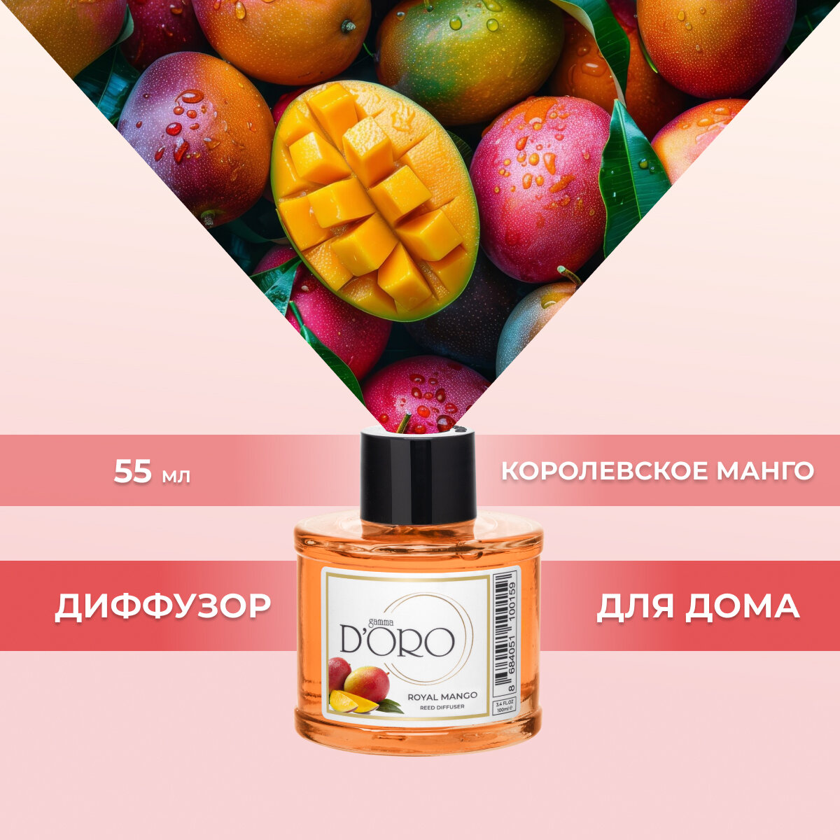 Диффузор для дома Gamma D'Oro Королевское манго 55 мл, аромадиффузор с палочками, ароматизатор освежитель воздуха