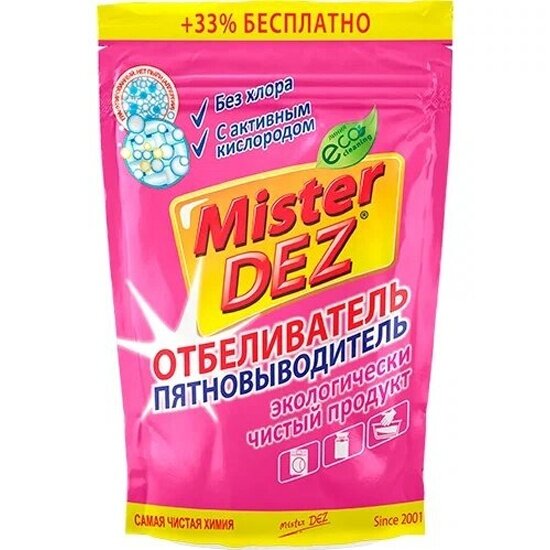 Ниже Вы можете прочитать отзывы на Отбеливатель-пятновыводитель Mister Dez Eco-Cleaning кислородный, экологичный, 800 г, ознакомится с подробными характеристиками, посмотреть интересные обзоры и фотографии на Отбеливатель-пятновыводитель Mister Dez Eco-Cleaning кислородный, экологичный, 800 г.