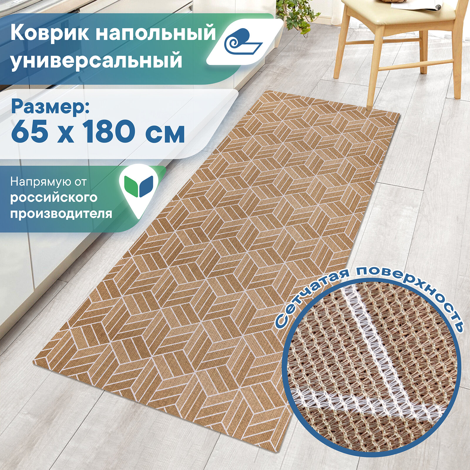 СохранитьКоврик дорожка VILINA напольный противоскользящий мягкий безворсовый в прихожую в комнату в коридор на кухню 65х180 см "Элемент" коричневый кубы интересное: