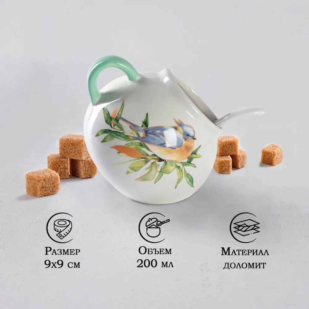 Сахарница с ложкой Доляна «Флора и Фауна», 200 мл, цвет белый